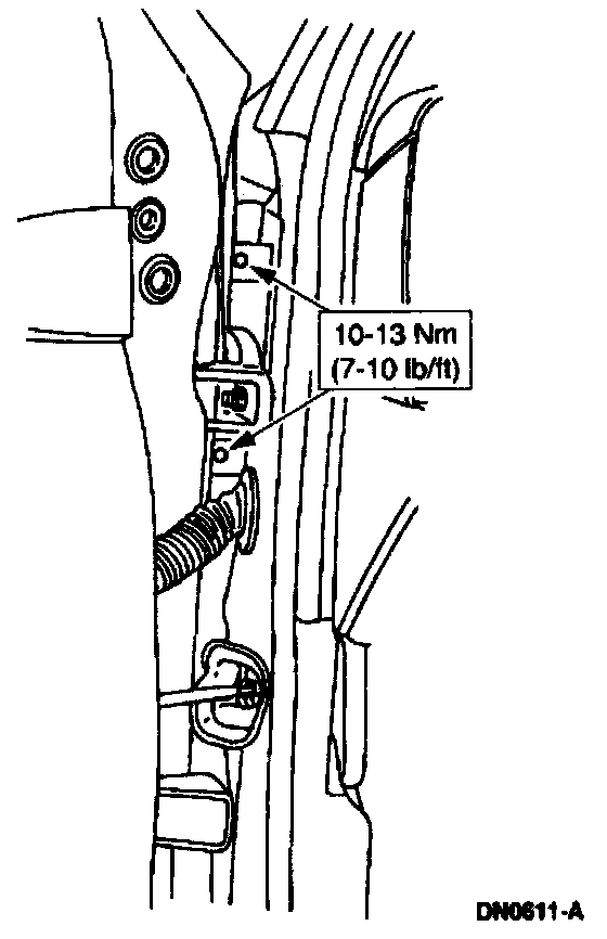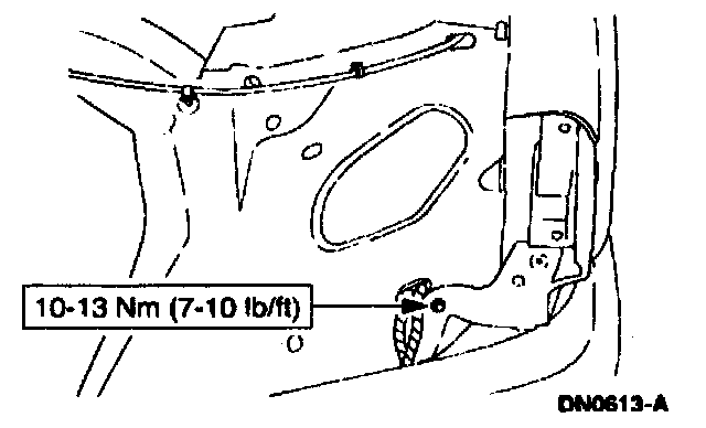 10. Open the door, then remove the fender retaining bolts.