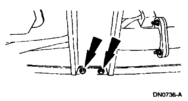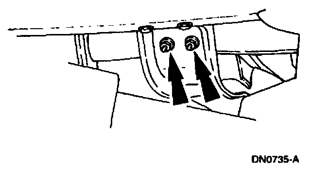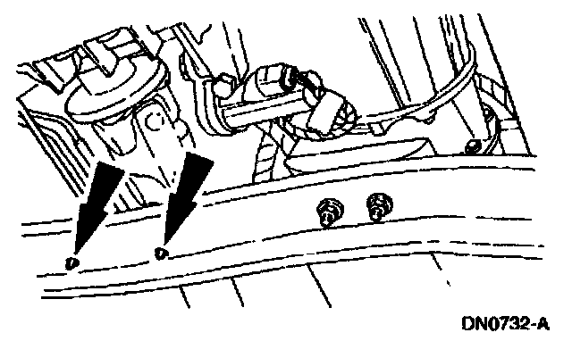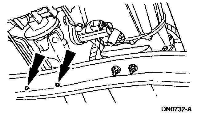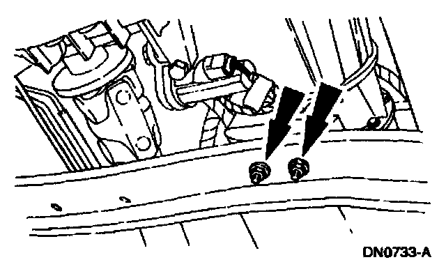 8. Remove the transmission support crossmember nuts and bolts (LH side).