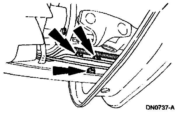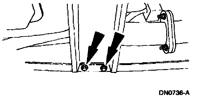 7. Remove the transmission support crossmember nuts and bolts (RH side).