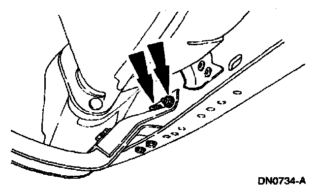 2. Loosely install the transmission support crossmember nuts and bolts (RH side).