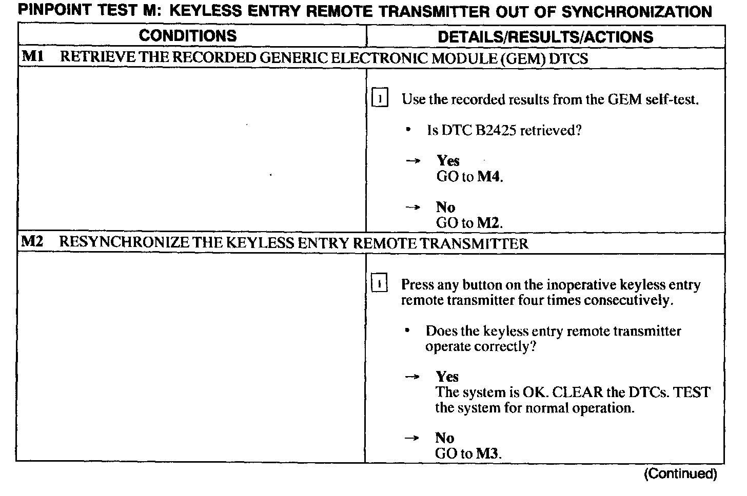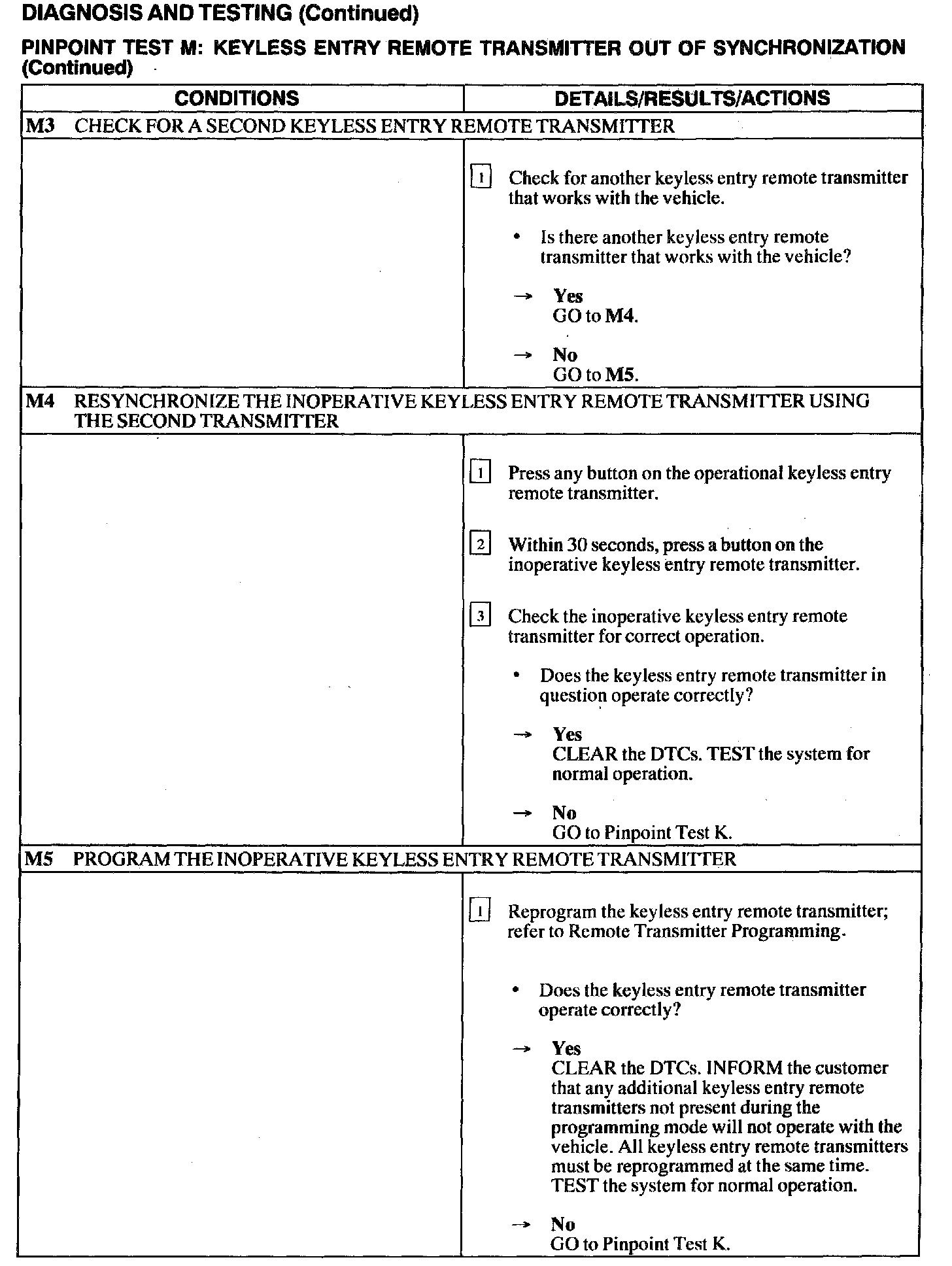 Test M: Keyless Entry Remote Transmitter Out of Synchronization