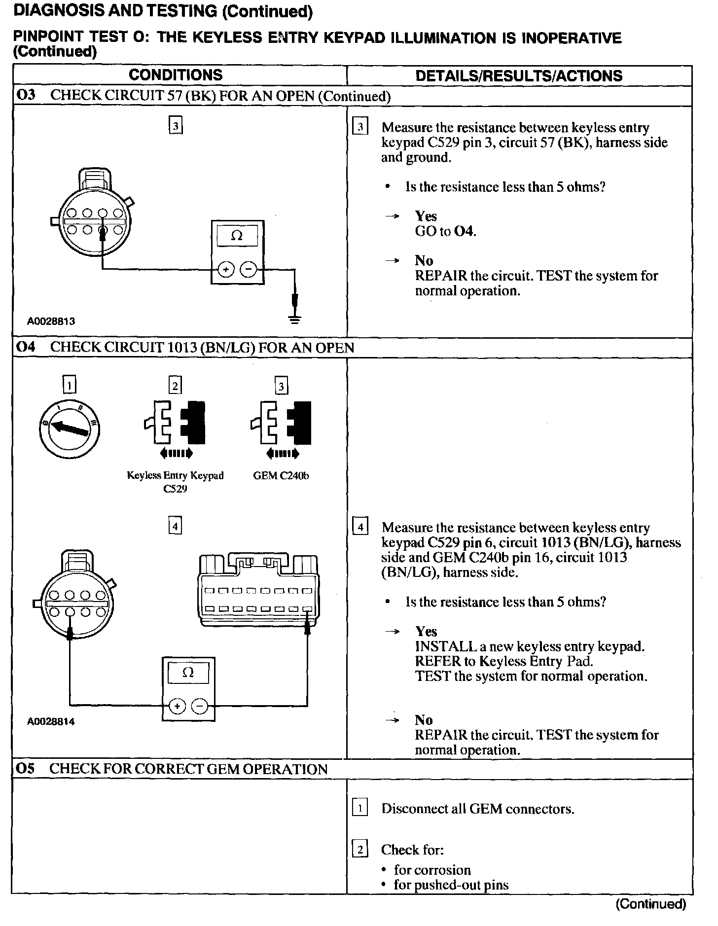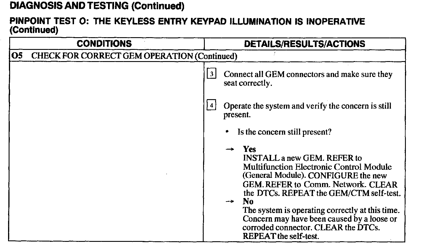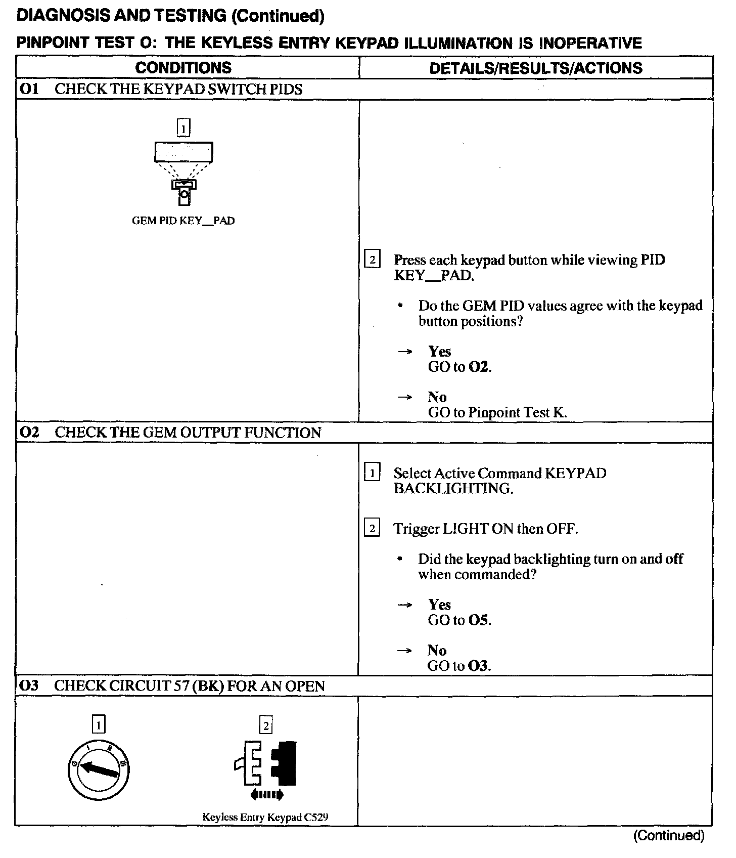 Test O: Keyless Entry Keypad Illumination Is Inoperative