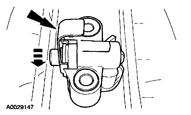 2. Install a retaining clip on the tensioner to hold the plunger in during installation.