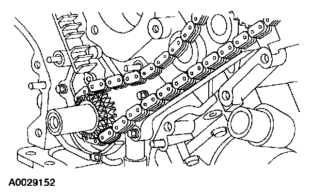 ^ Remove the LH timing chain and crankshaft sprocket.