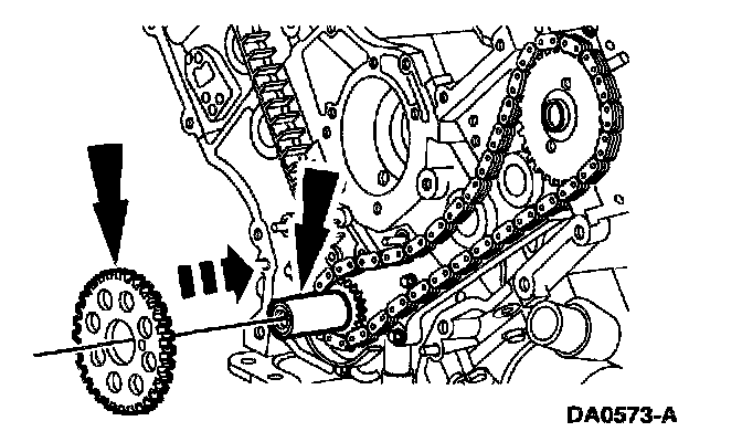 13. NOTE: If necessary, adjust the camshaft sprocket slightly to obtain timing mark alignment with the Camshaft Positioning Tool.