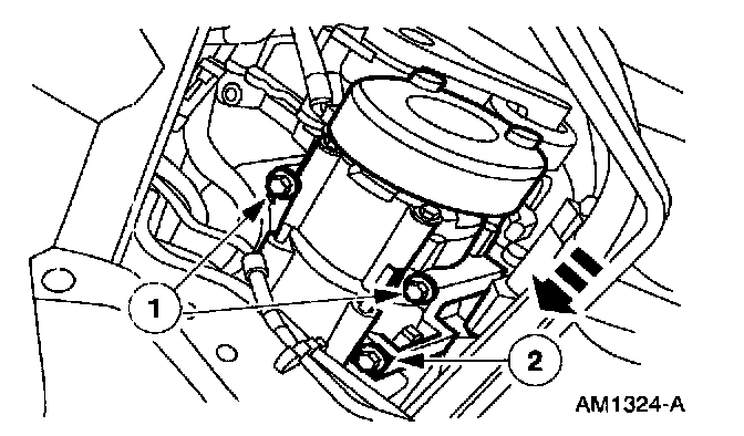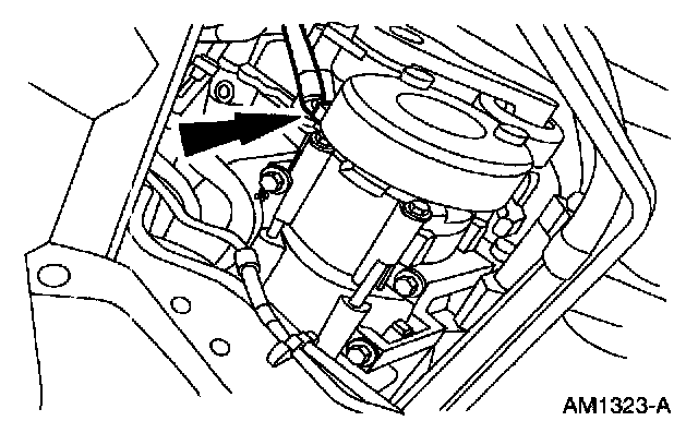 7. The lower rear bolt must be removed with the A/C compressor.