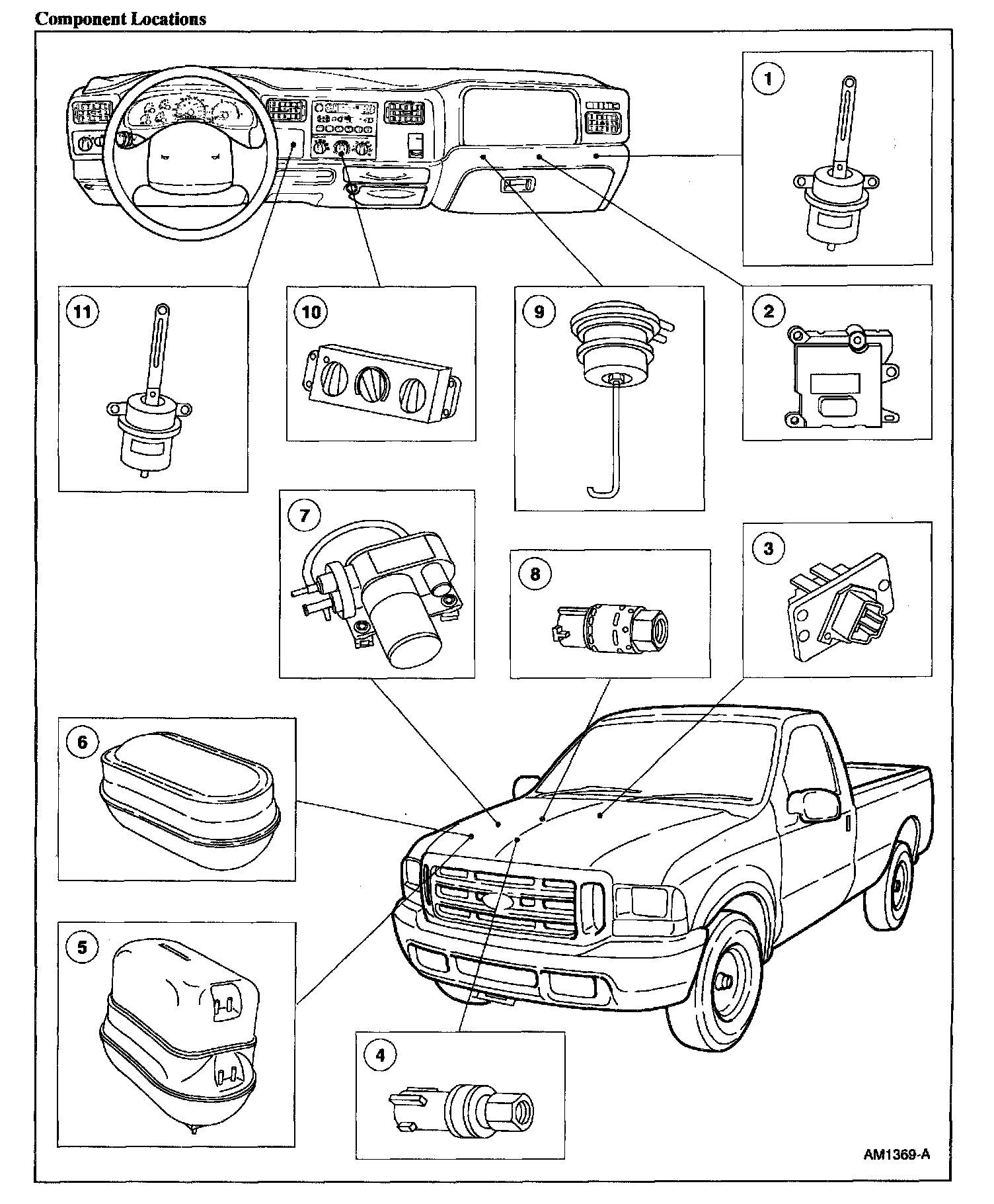 ^ The function selector switch combines a vacuum selector valve with two electrical switches to supply battery positive voltage (B+) to the blower motor control circuit and the A/C clutch circuit (if equipped).