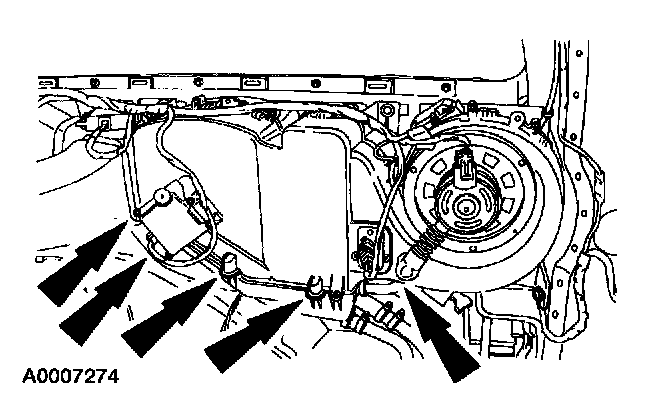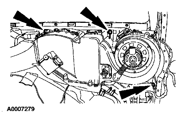 10. Remove the bolts and position the air conditioning and heater assembly aside.