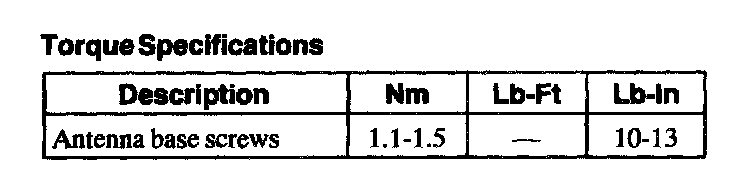 Torque Specifications: