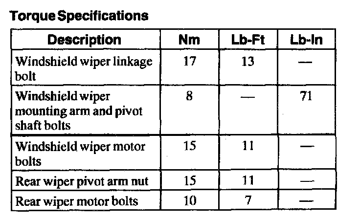 Torque Specifications