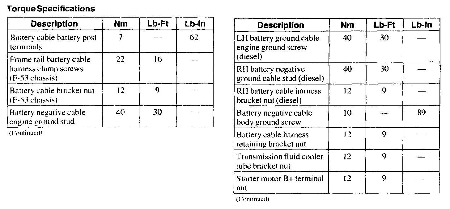 Torque Specifications (Part 1):