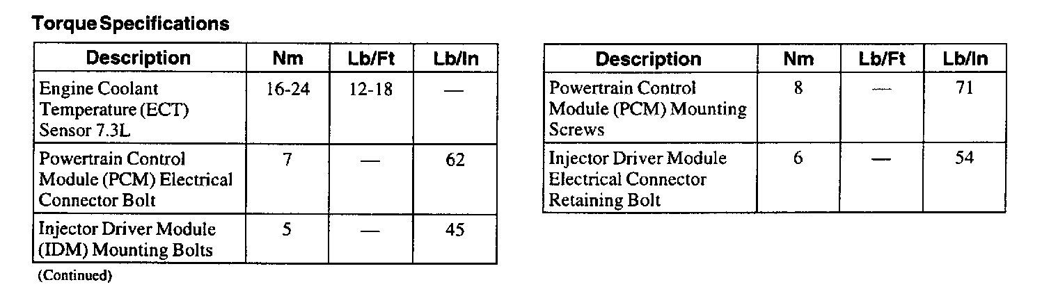 Torque Specifications: