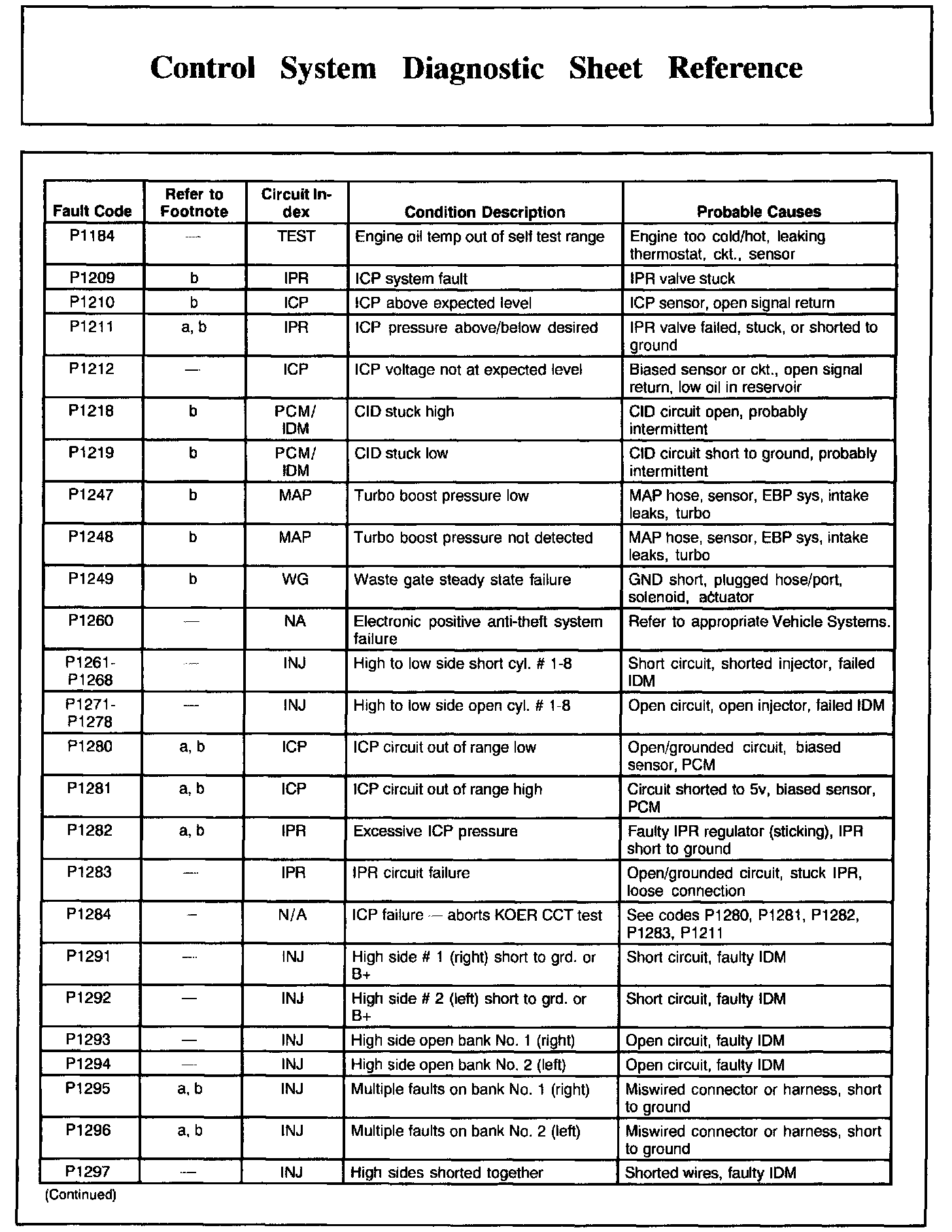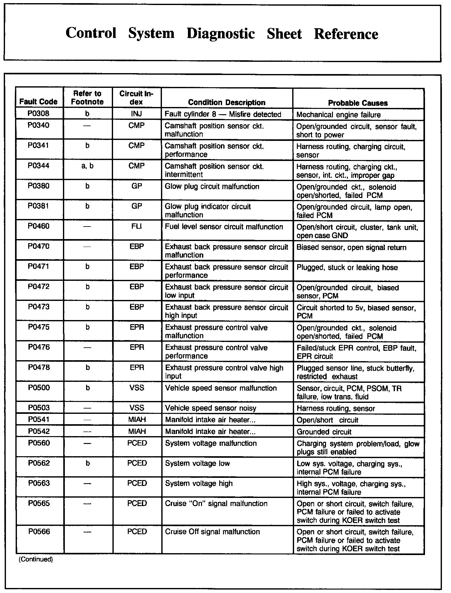 DTC Condition/Cause Chart, Part 2:
