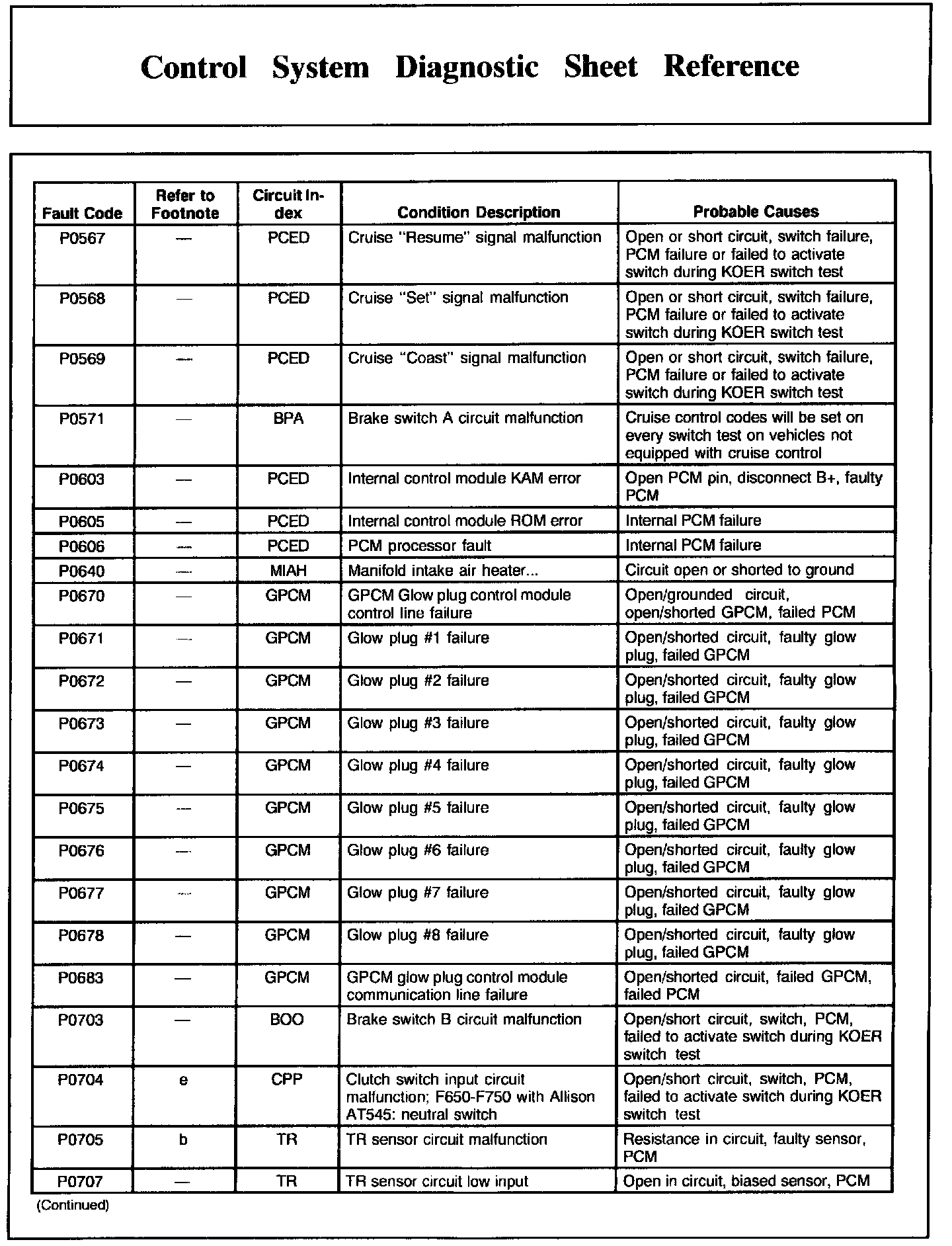 DTC Condition/Cause Chart, Part 3:
