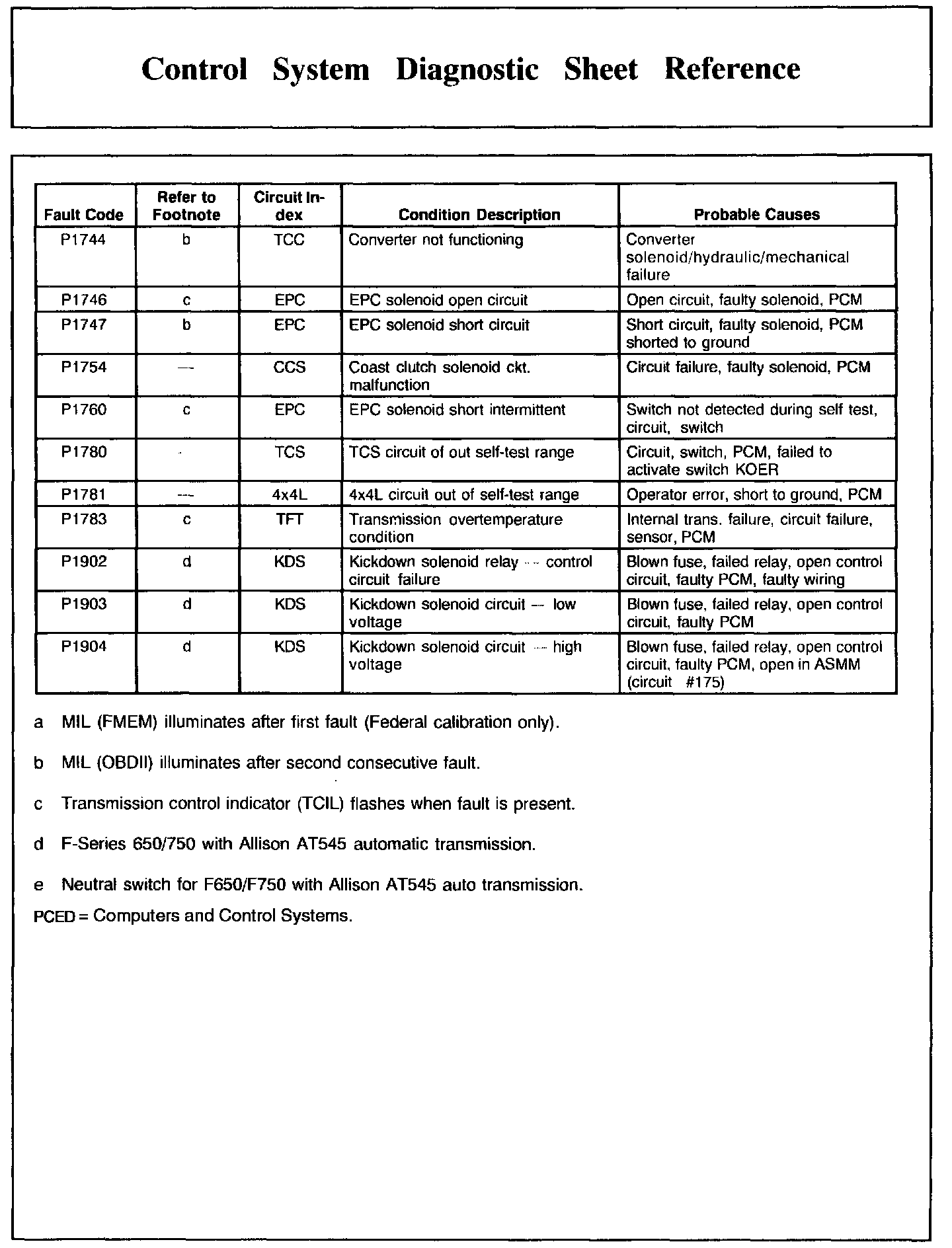 DTC Condition/Cause Chart, Part 4: