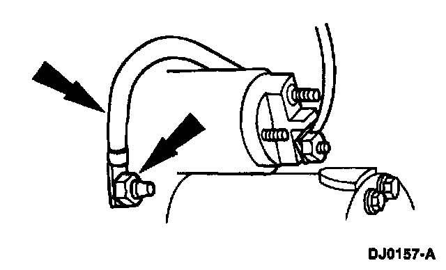 5. Remove the starter motor ground cable nut and the starter motor ground cable.