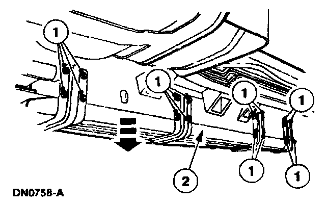 - Be sure to disconnect the running board lights electrical connector, if equipped. Remove the running board.