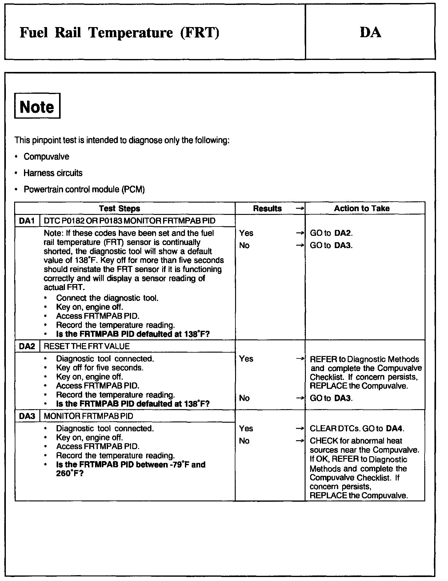 Test DA: Fuel Rail Temperature (FRT)