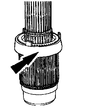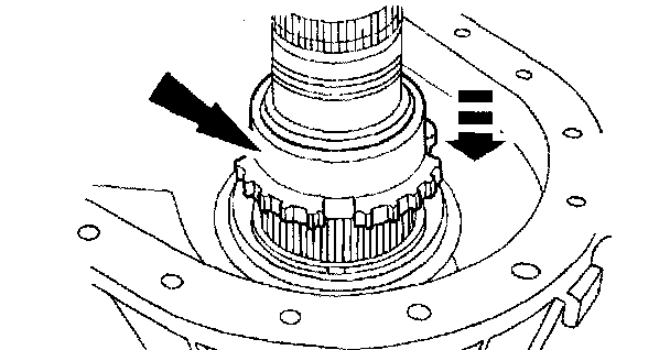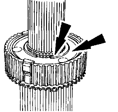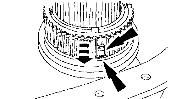 29. Position and rotate the synchronizer hub until it drops into the installed position. Install a new retaining ring.