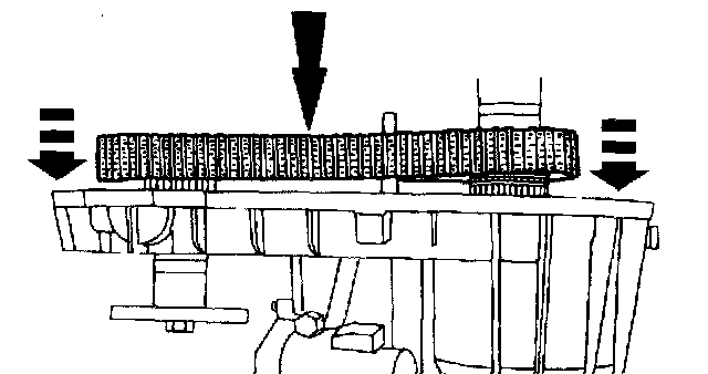 32. CAUTION: Install the mainshaft assembly so that the synchronizer strut bears against one of the synchronizer or mode sleeve teeth.