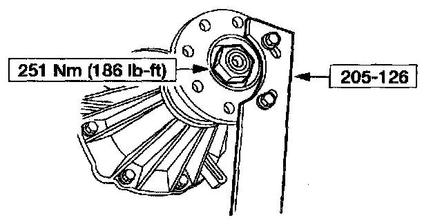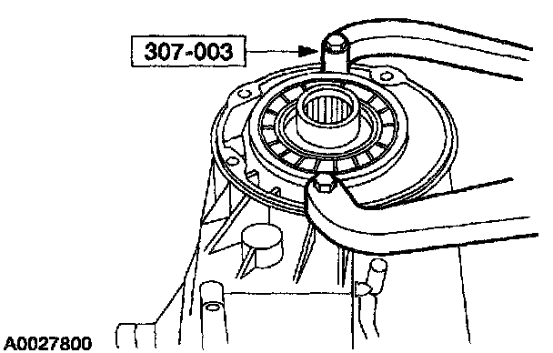 ^ Use the special tool to prevent the flange from turning while installing a new nut.