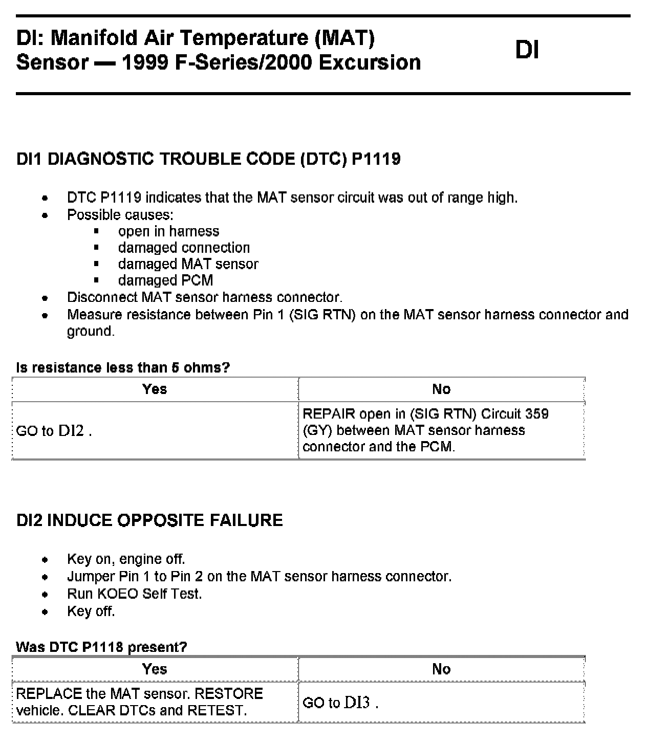 Tests DI: Manifold Air Temperature (MAT) Sensor