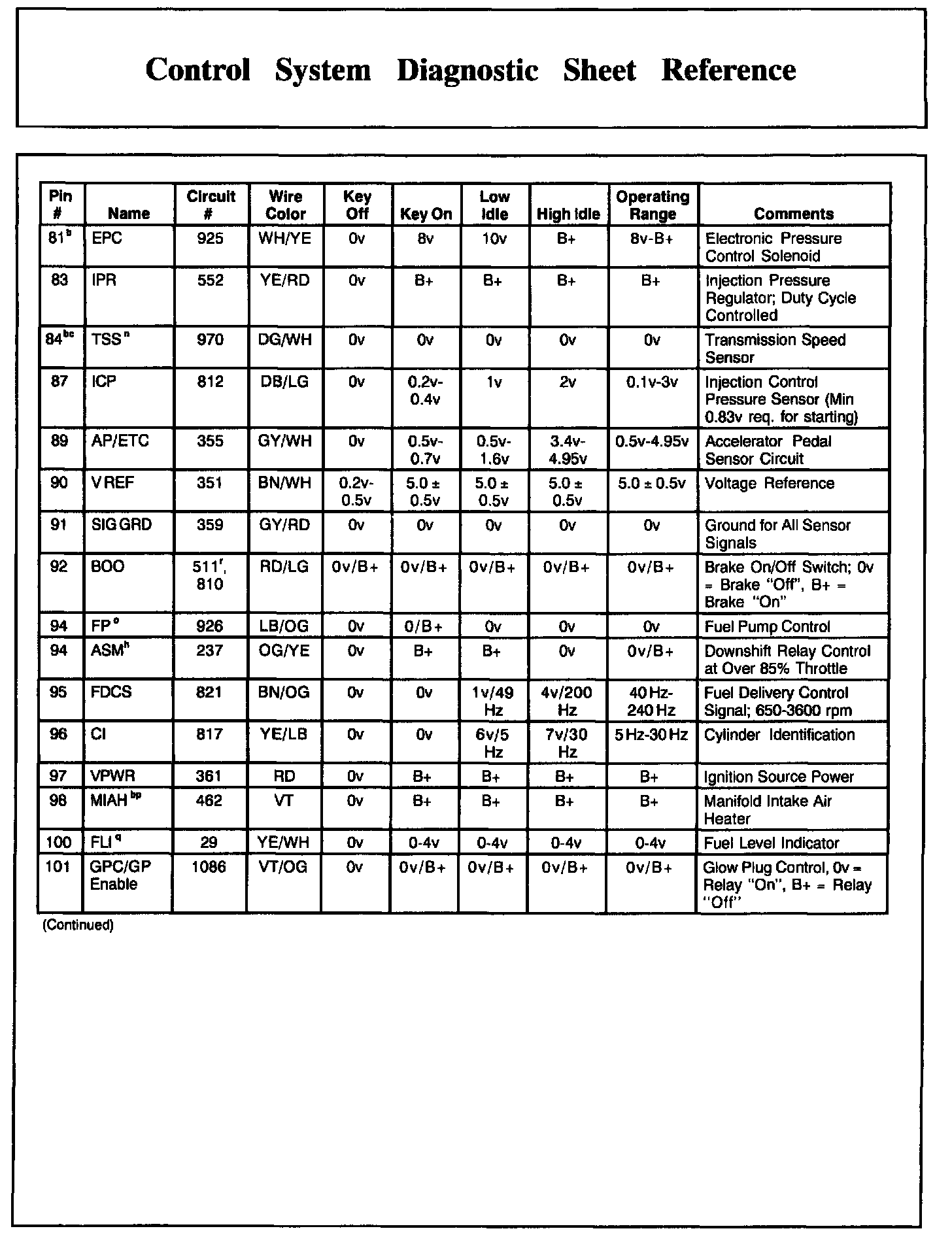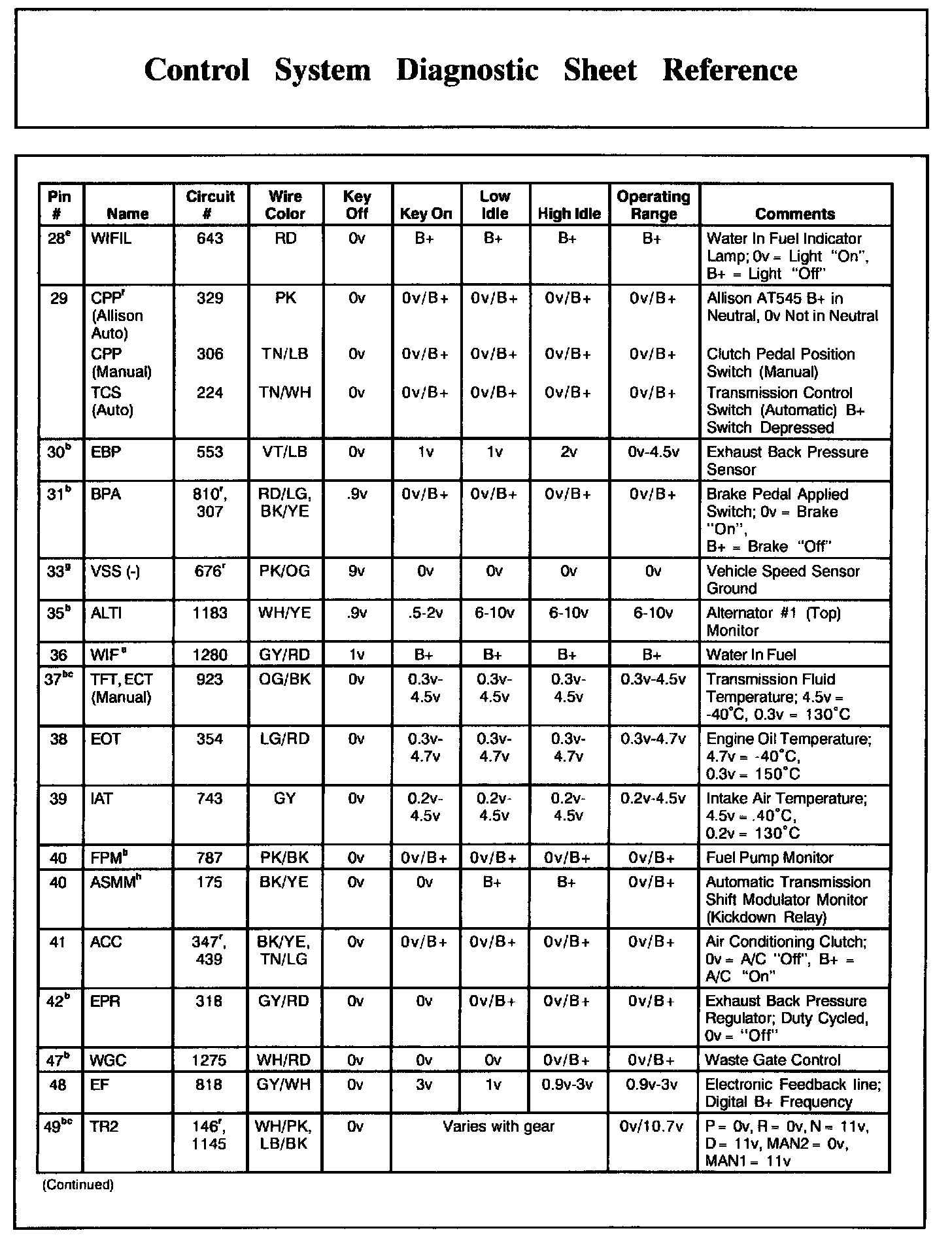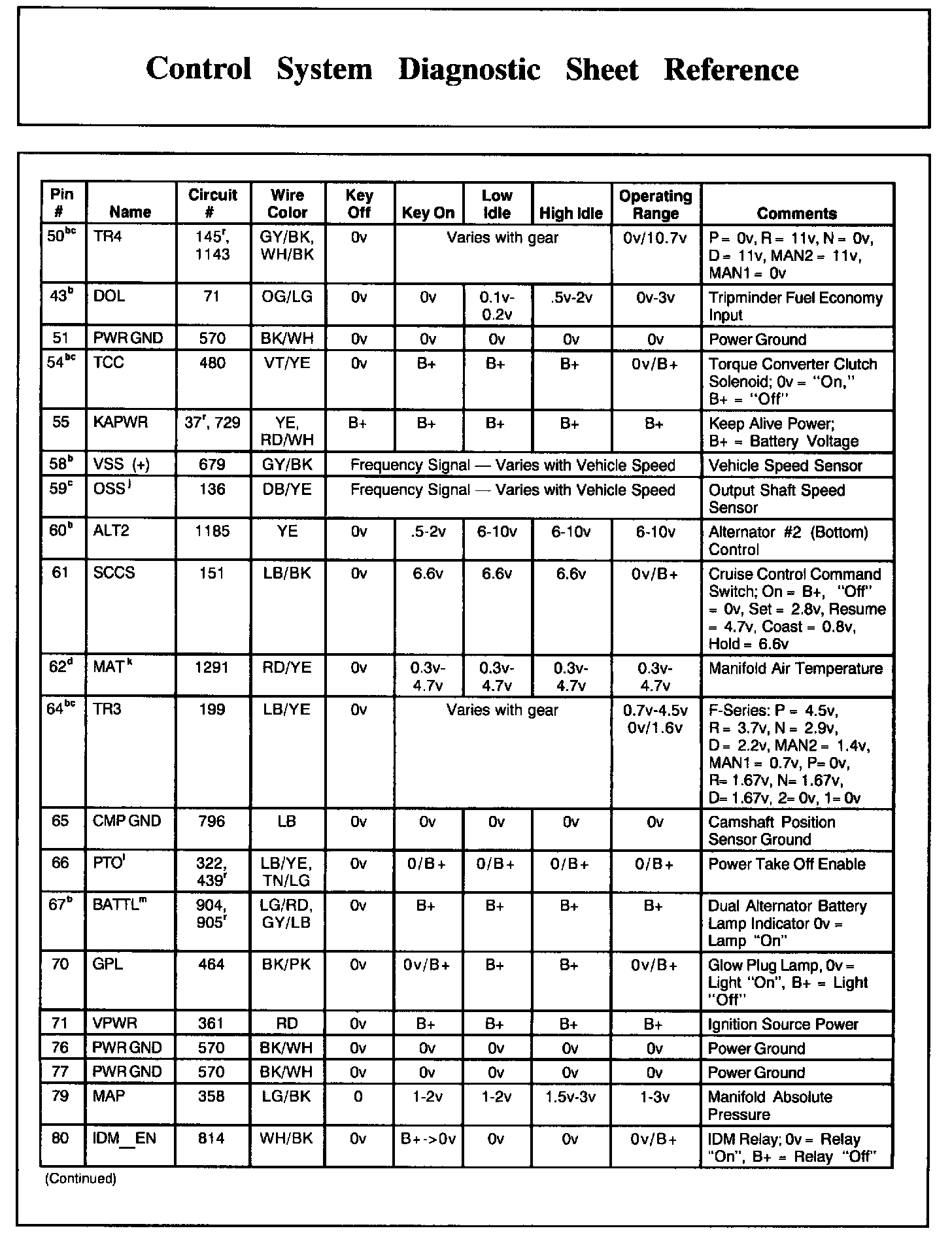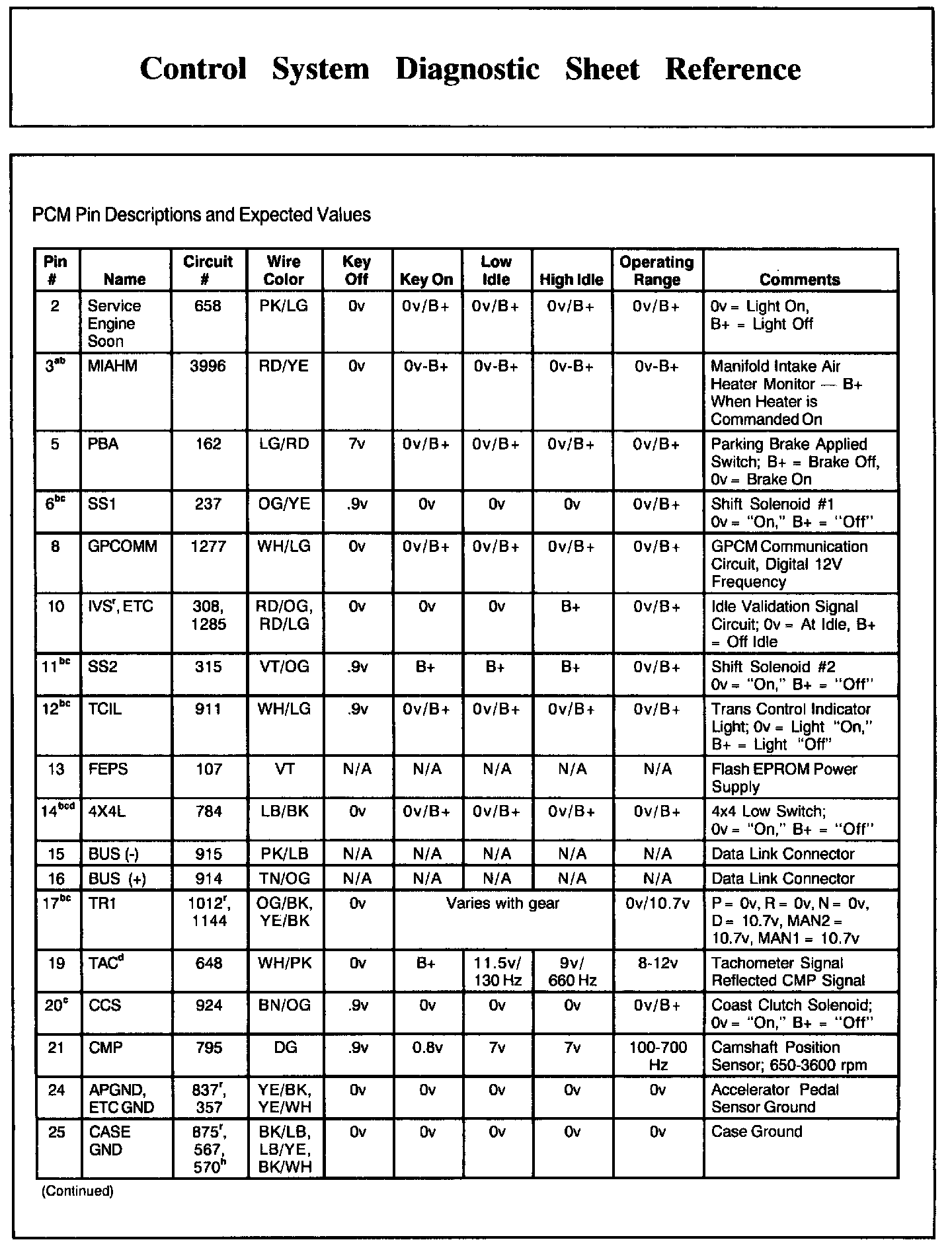 PCM Pin Descriptions And Expected Values, Part 2: