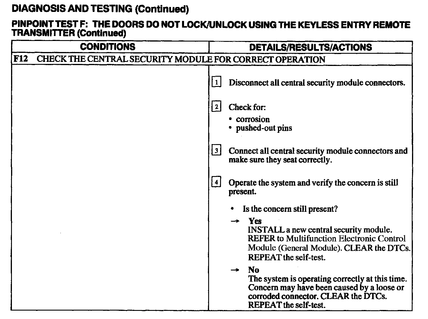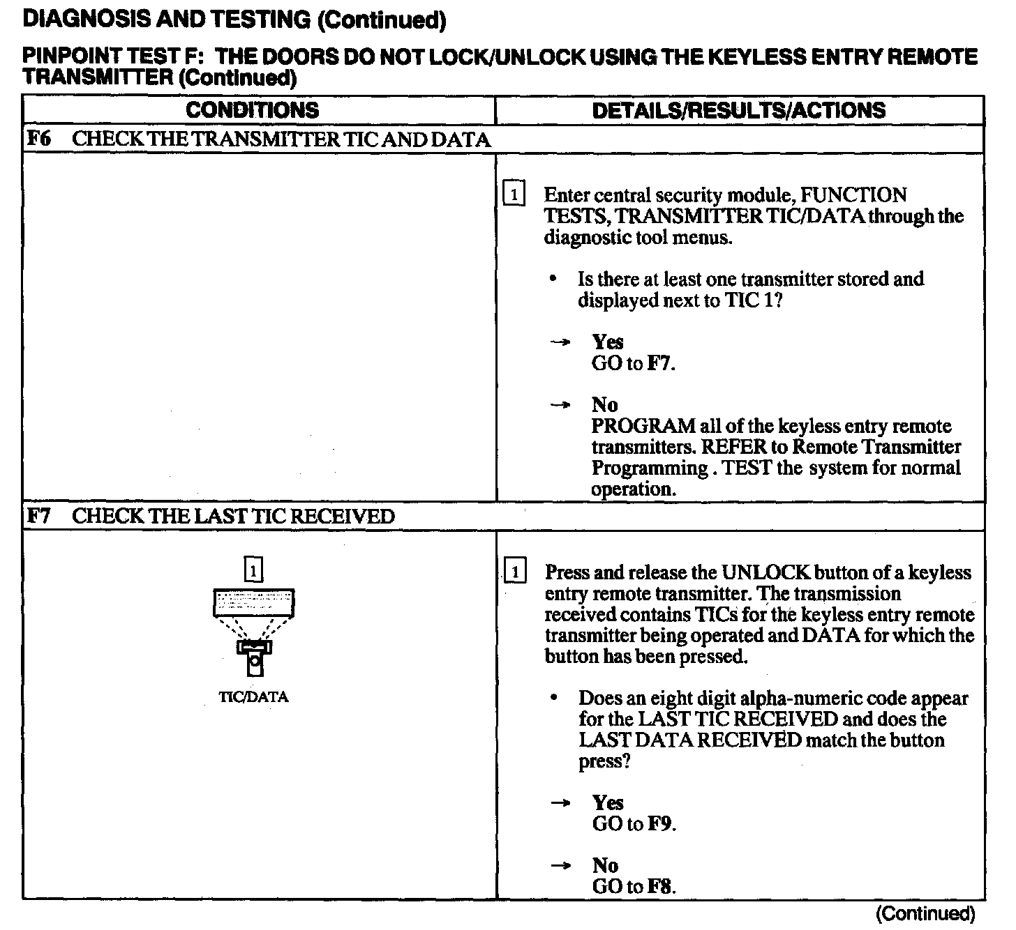 Test F: Doors Do Not Lock/Unlock Using The Keyless Entry Remote Transmitter