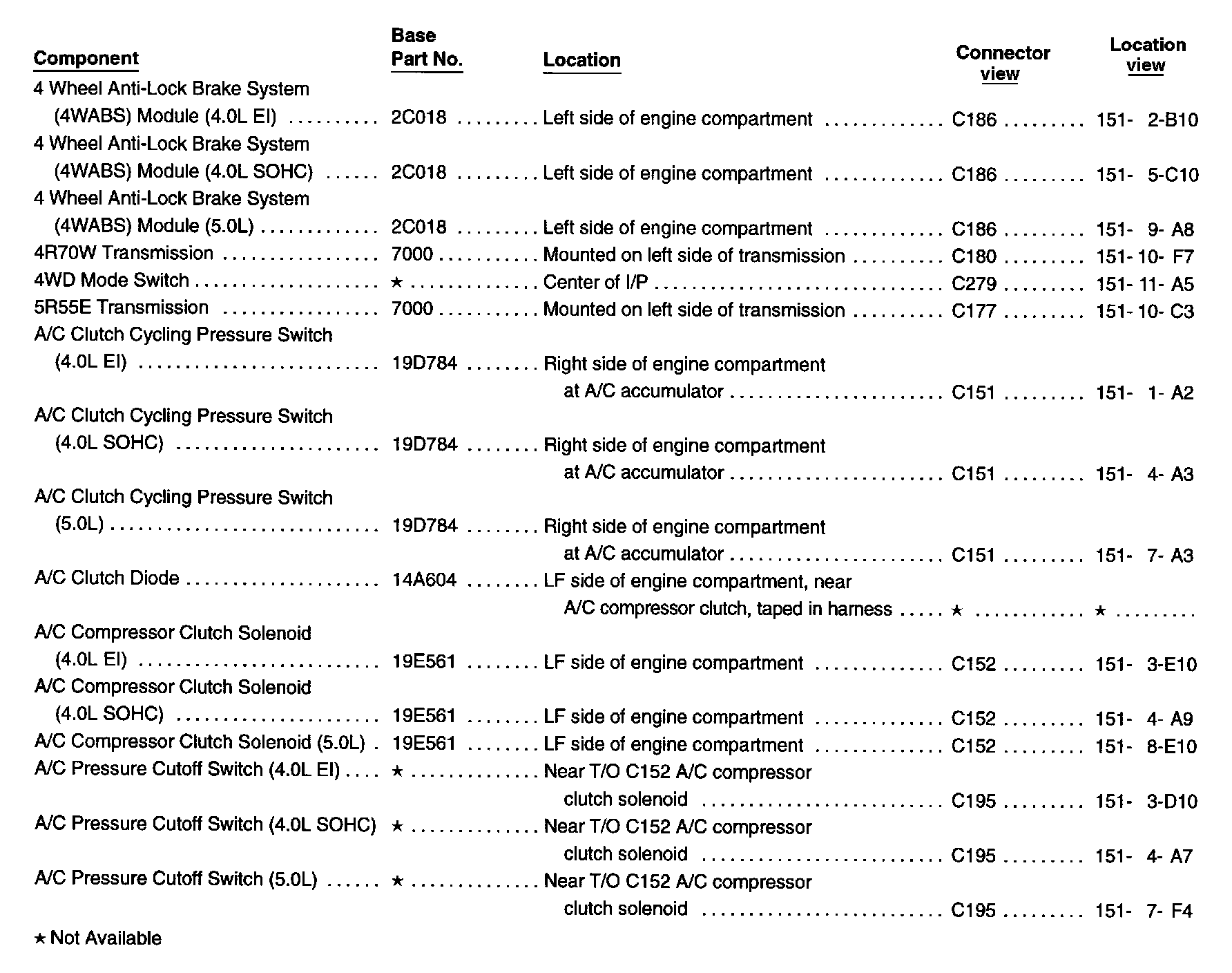 Explorer 2WD V6-245 4.0L VIN X SFI