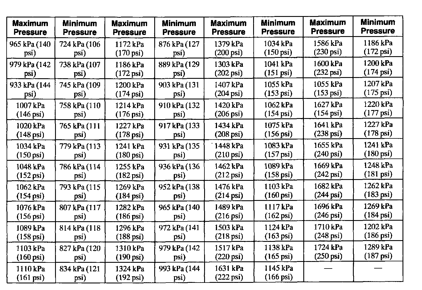 Compression Pressure Limit Chart