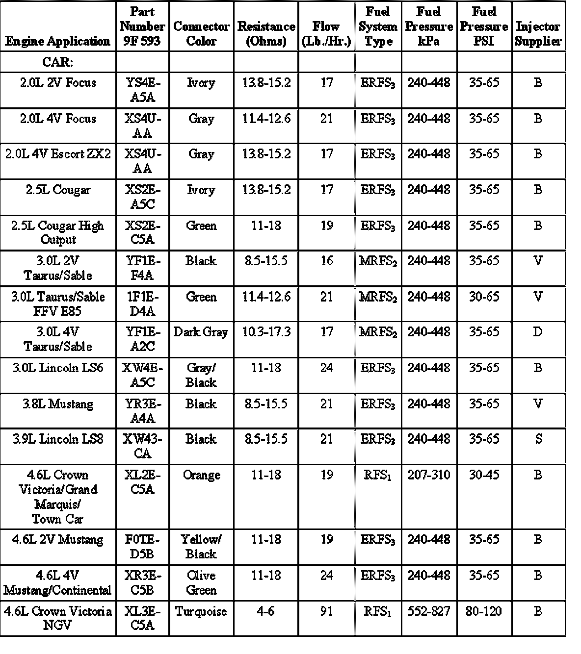 Fuel Pressure: Specifications