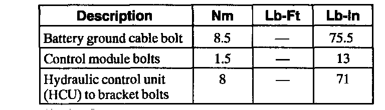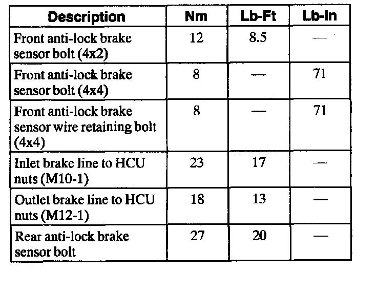 Torque Specifications