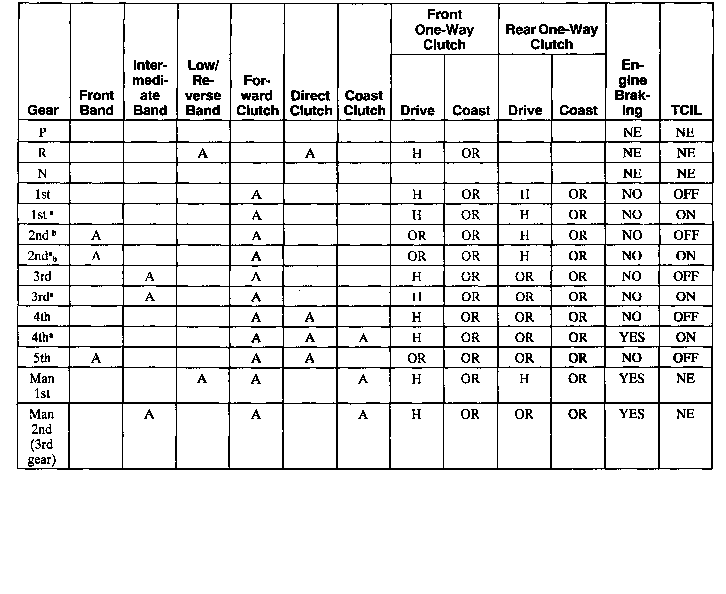 Band/Clutch Application Chart