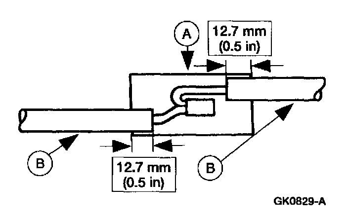 5. Position the (A) heat shrink tube over the (B) wire repair.