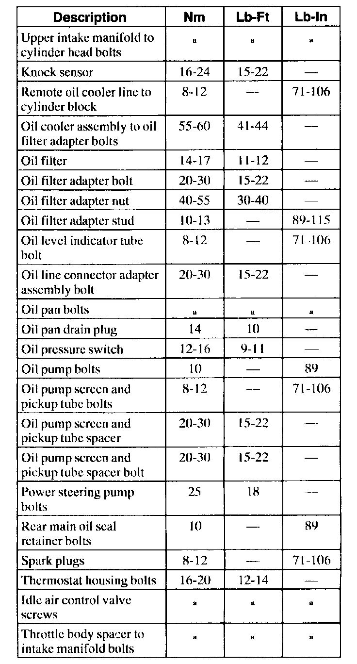 General Torque Specifications