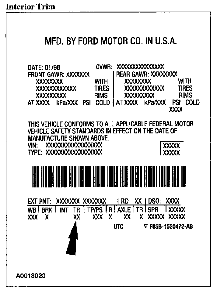 Interior trim codes are listed as a two-part code. The first code listed, identifies the trim level. The second code listed, identifies the interior trim color.