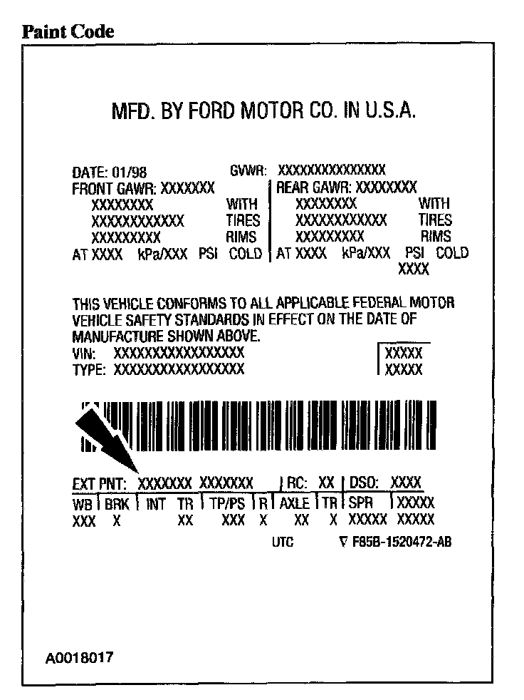 Exterior paint codes may be listed as a two-part code. The first set of letters/numbers identify the vehicle primary body color. The second set of letters/number (if applicable) identify a two-tone or accent body color.