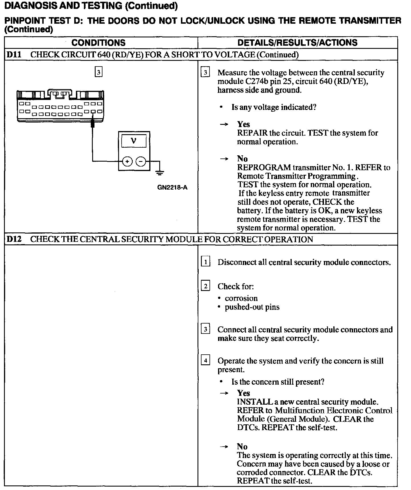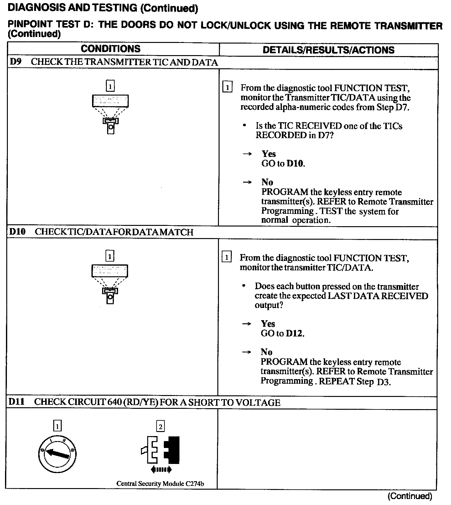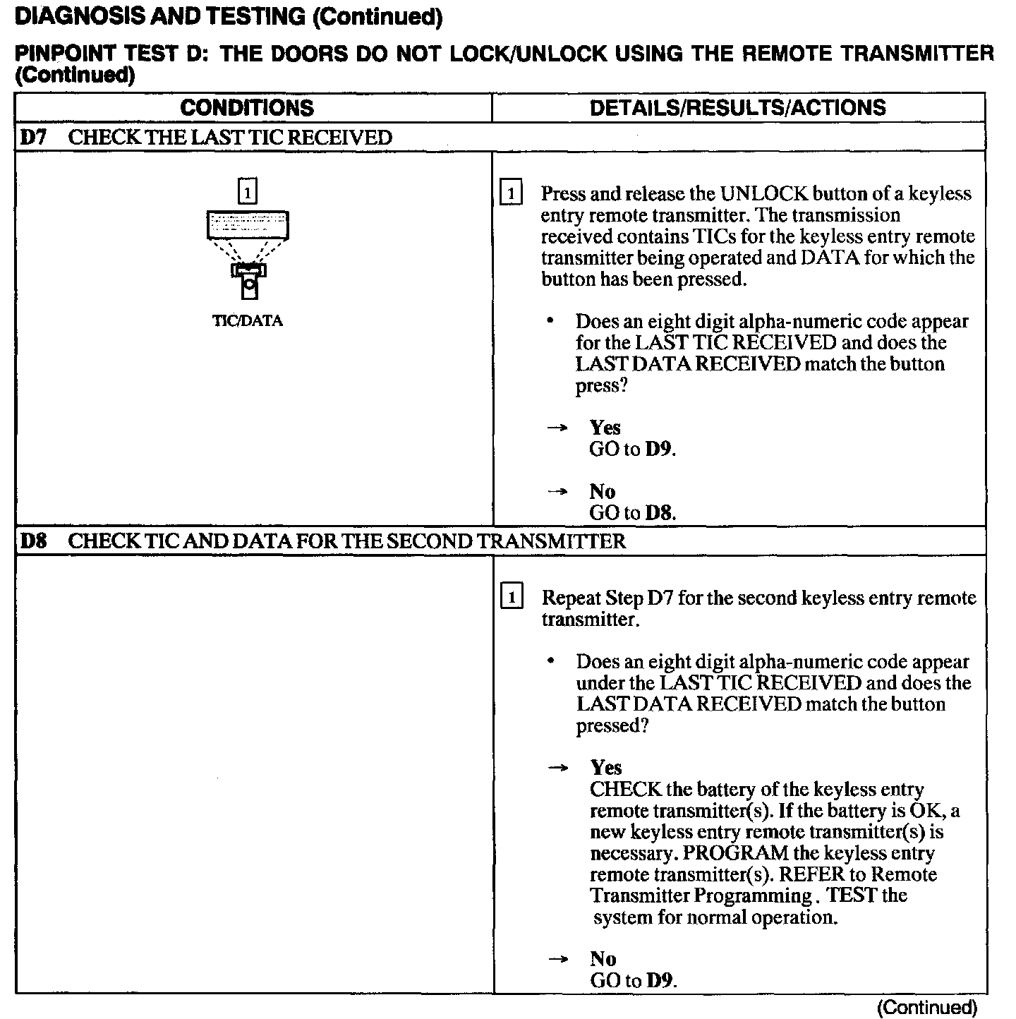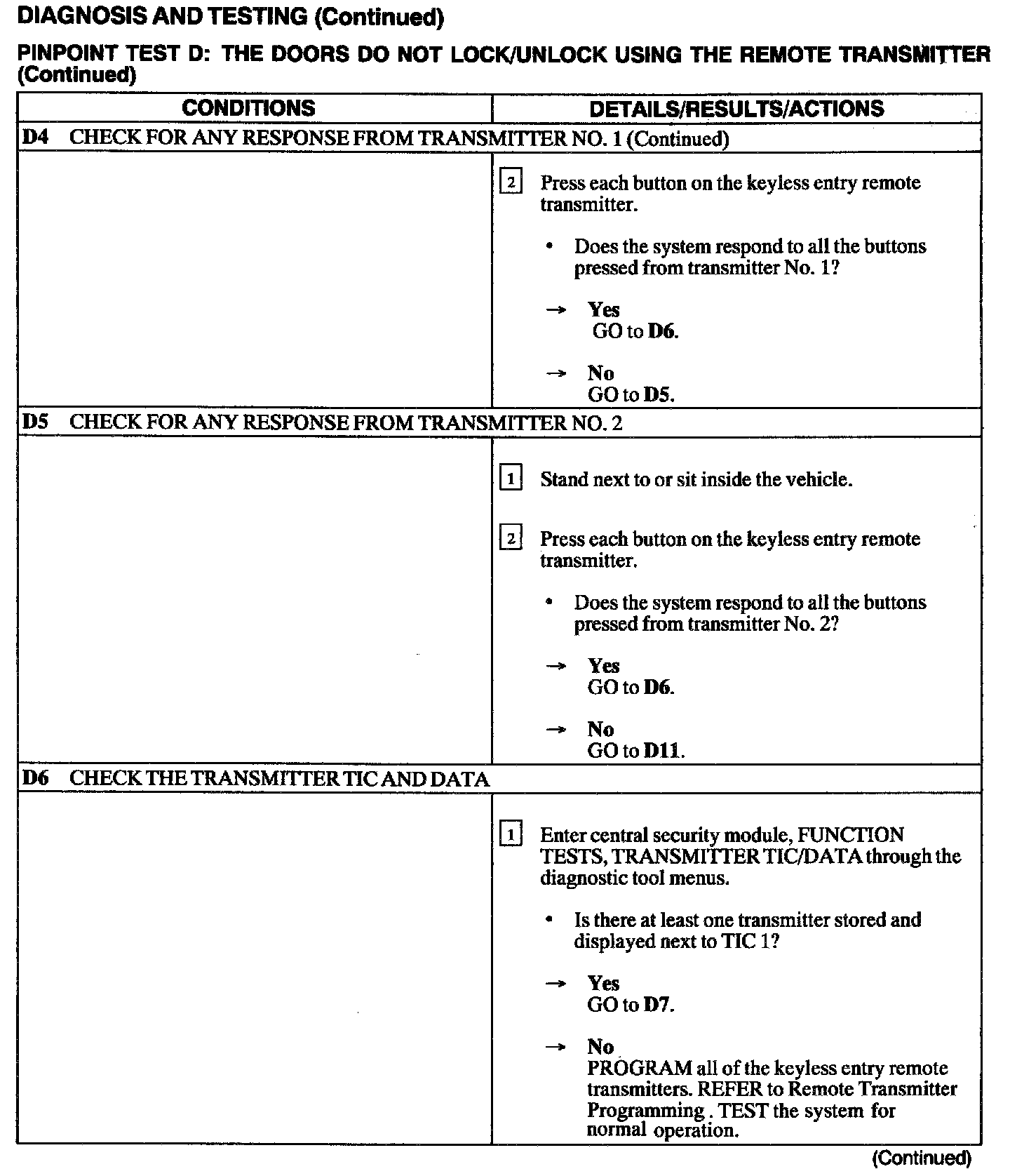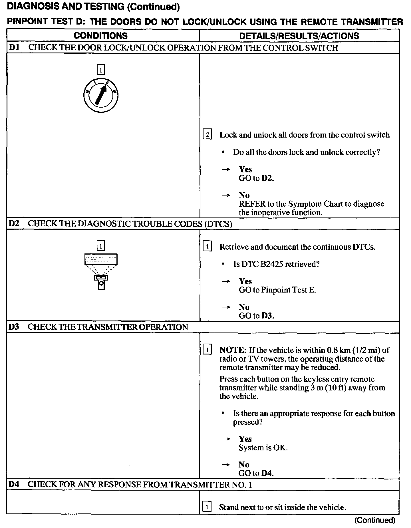 Test D: Doors Do Not Lock/Unlock Using The Remote Transmitter