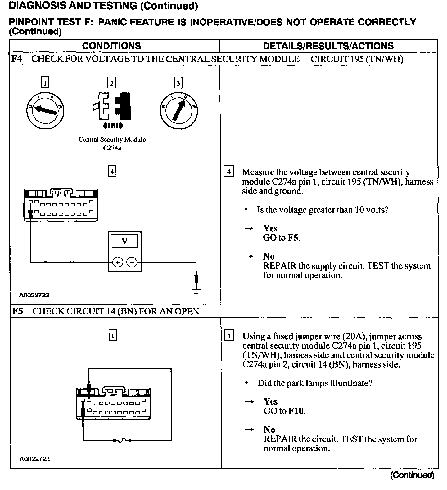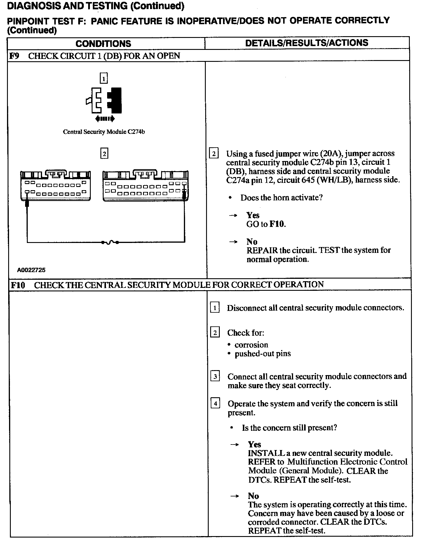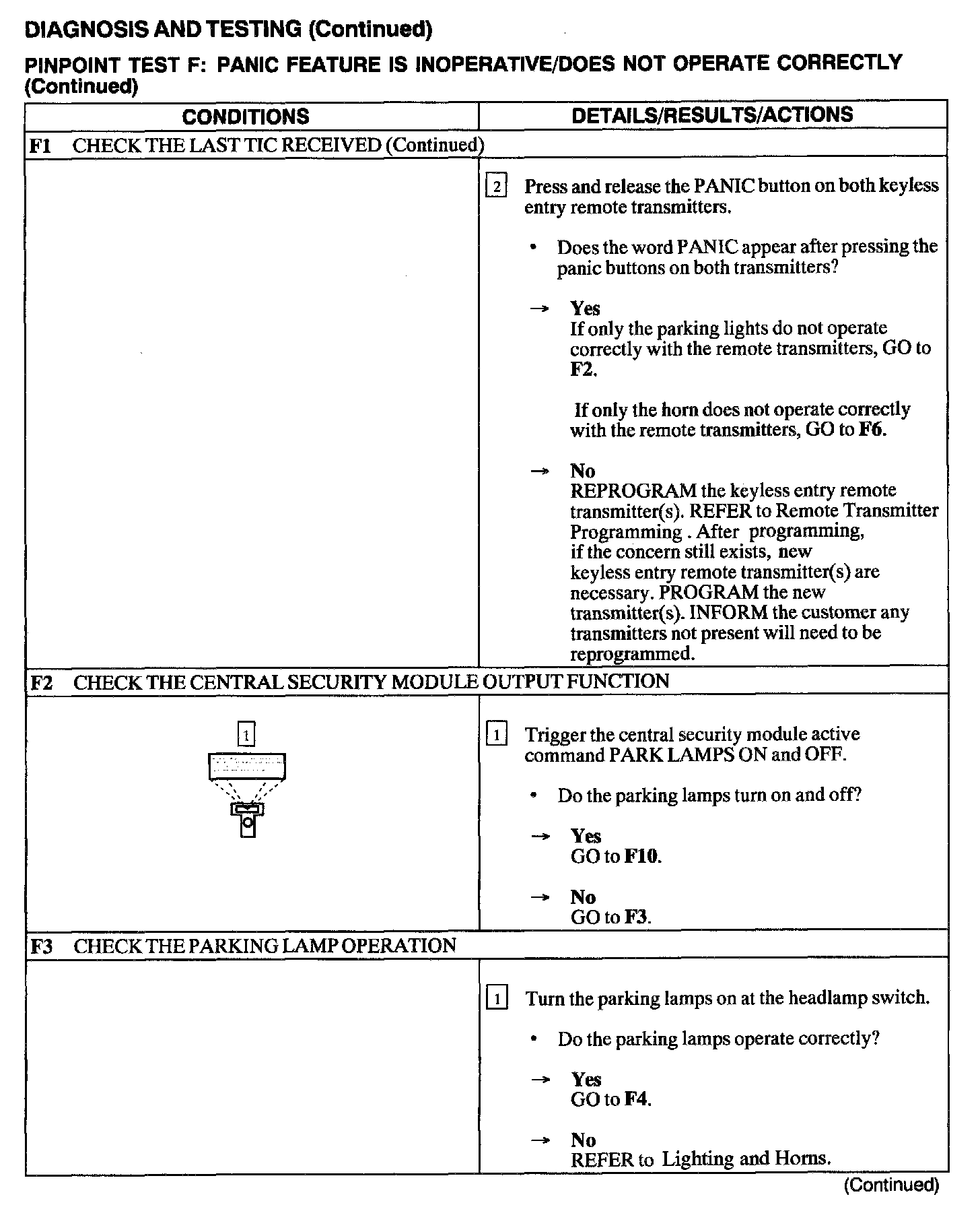 Test F: Panic Feature Is Inoperative/Does Not Operate Correctly