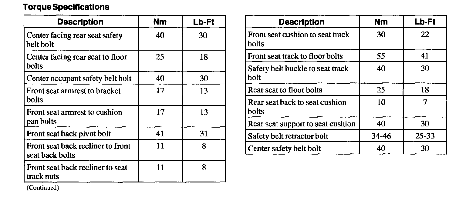 Torque Specifications: