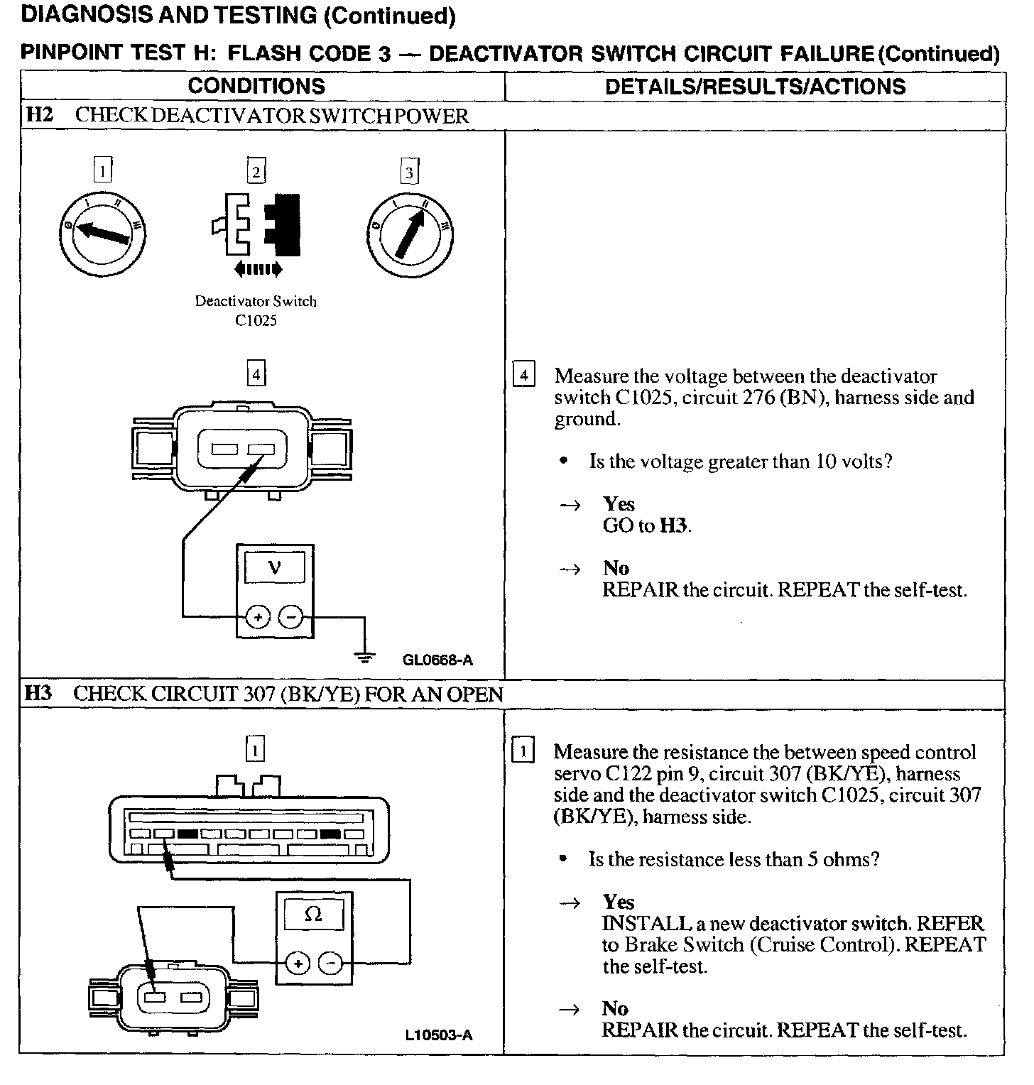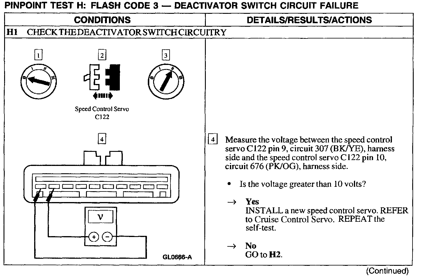 Test H: Flash Code 3 - Deactivator Switch Circuit Failure