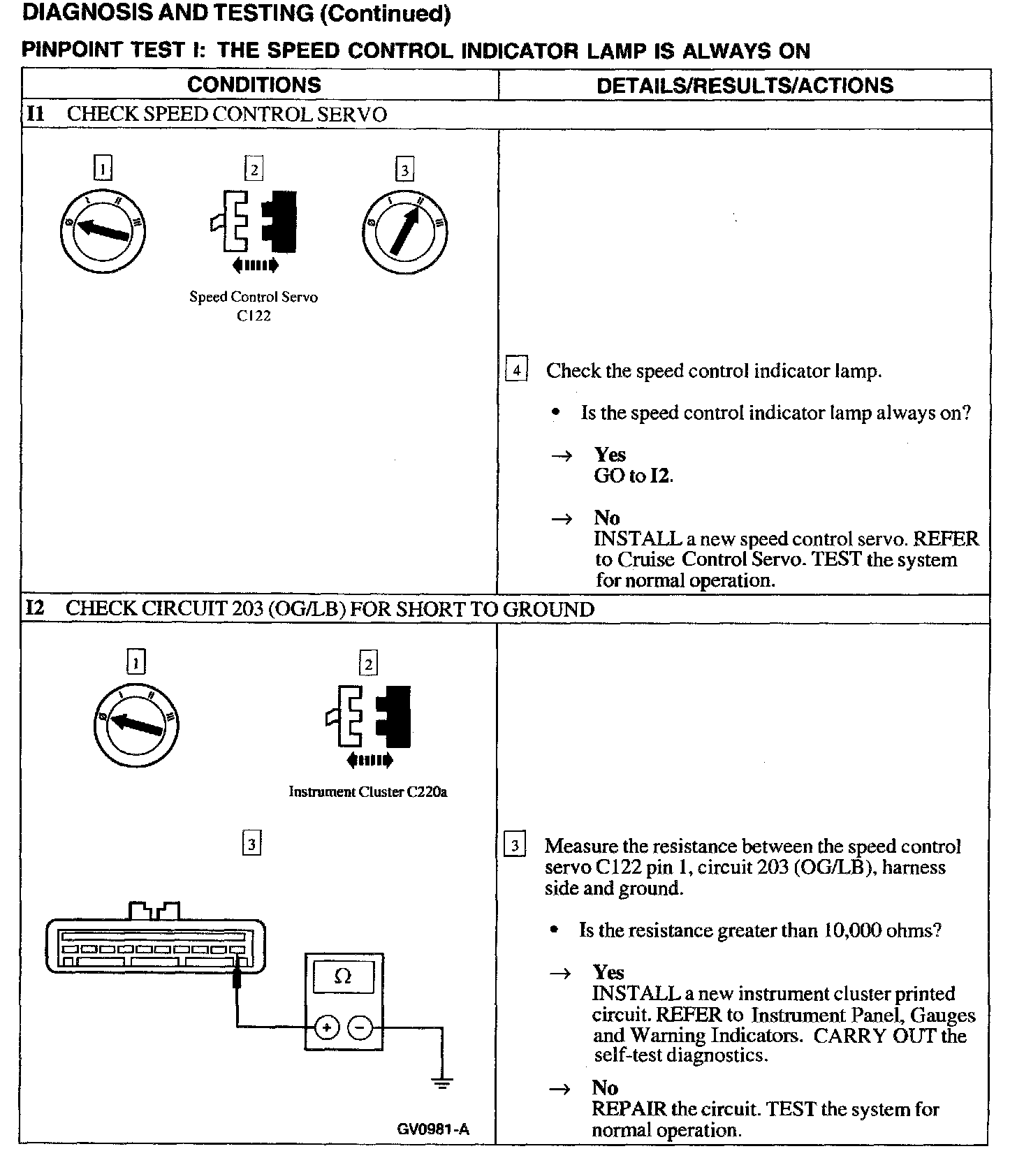 Test I: Speed Control Indicator Lamp Is Always On