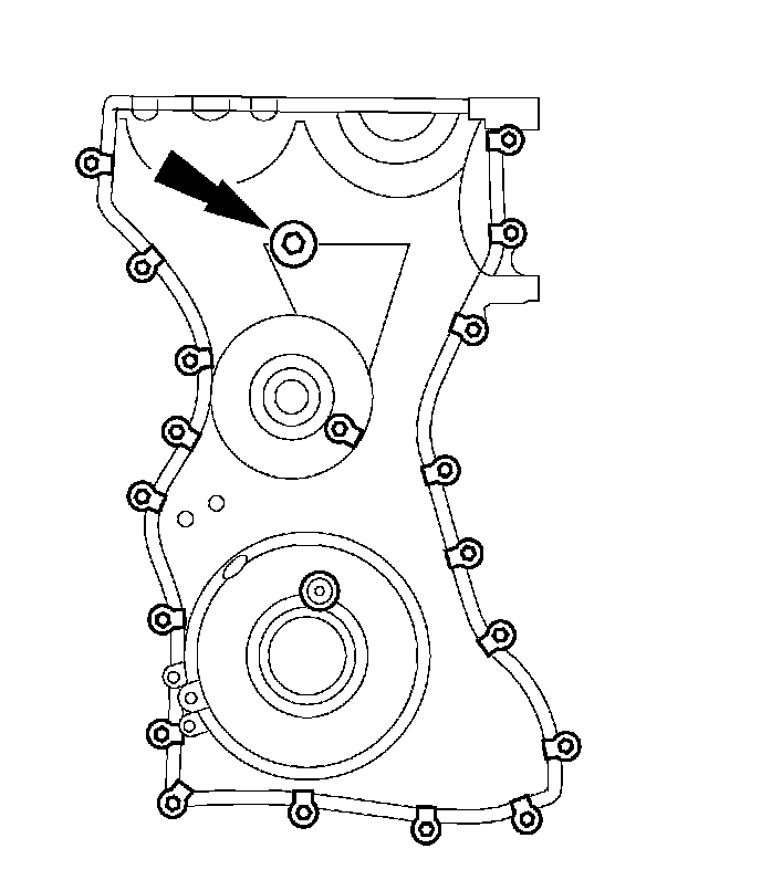 10. NOTICE: Only hand tighten the 6 mm (0.23 in) bolt or damage to the front cover can occur.