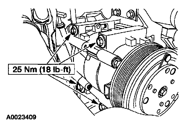 2. Remove the accessory drive belt from the A/C compressor pulley.