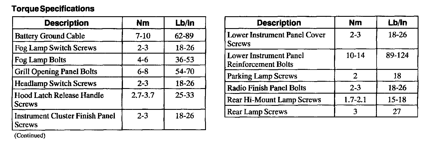 Torque Specifications: