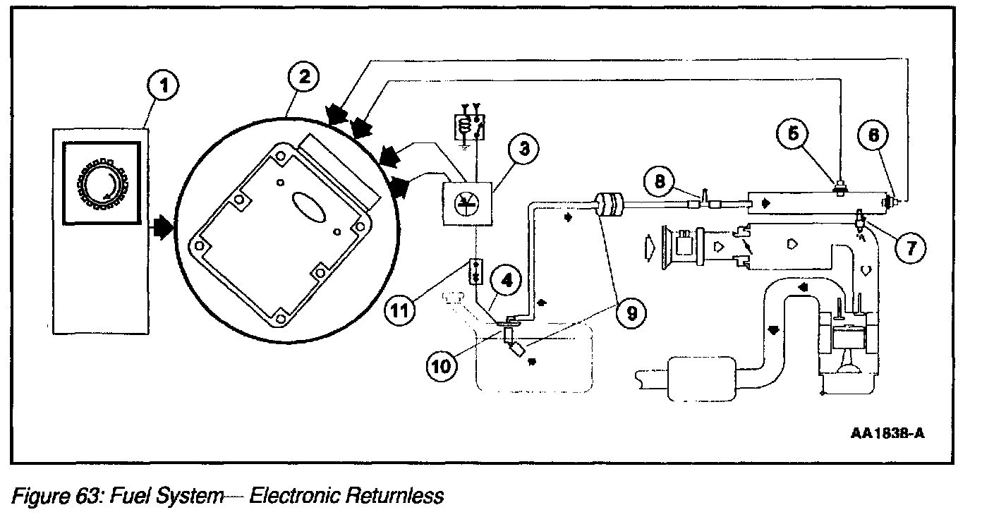 The fuel system consists of a fuel tank with a reservoir, fuel pump module, fuel supply lines, fuel filter(s), schrader/pressure test point, fuel rail, fuel injectors, and fuel pressure regulator. Operation of the system is as follows (refer to Figure 61 for all others):
