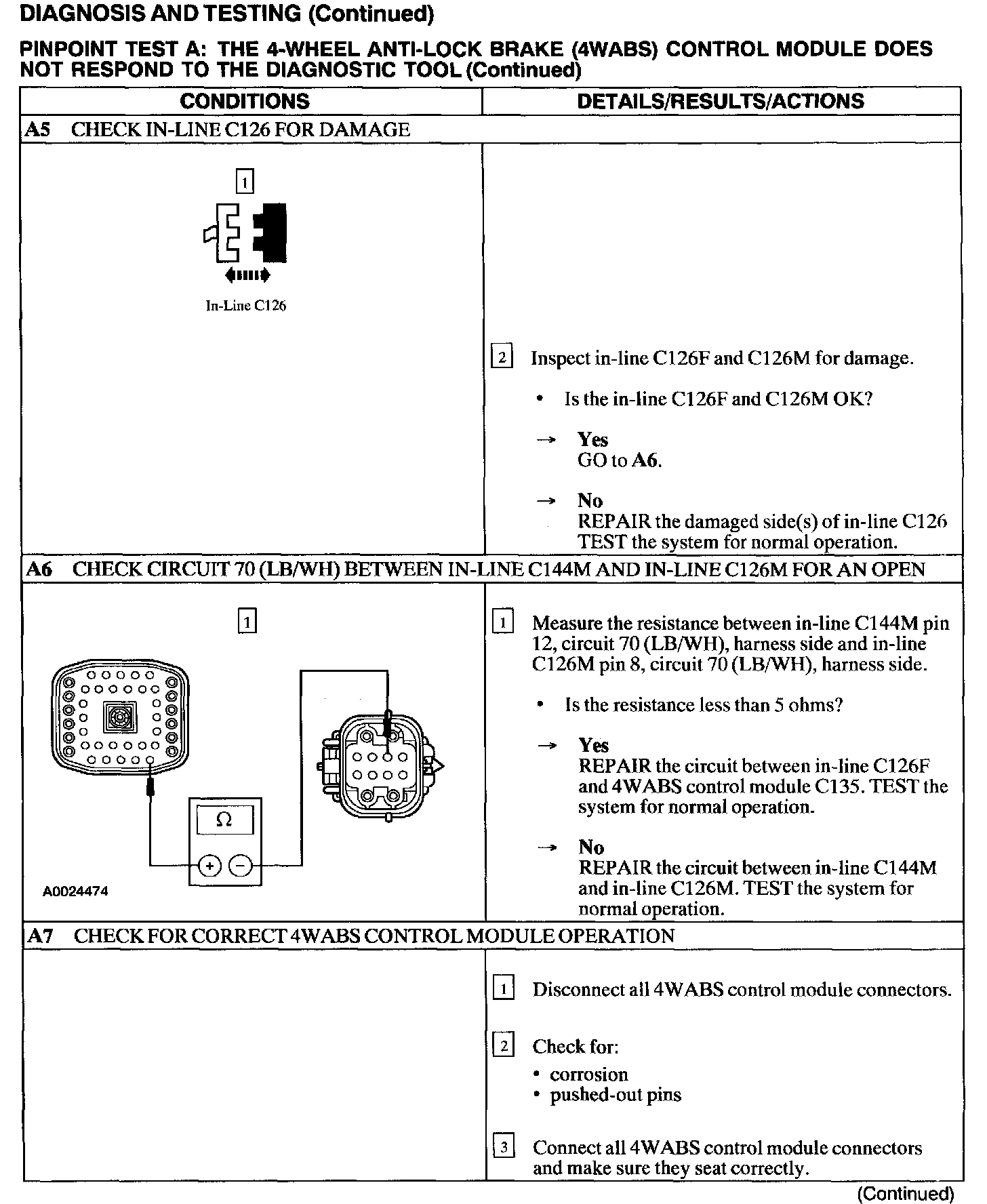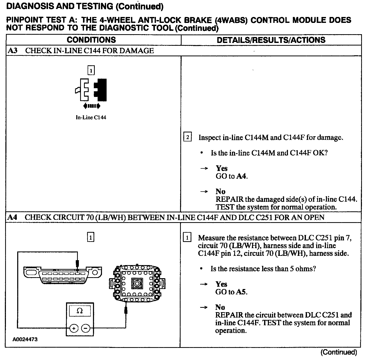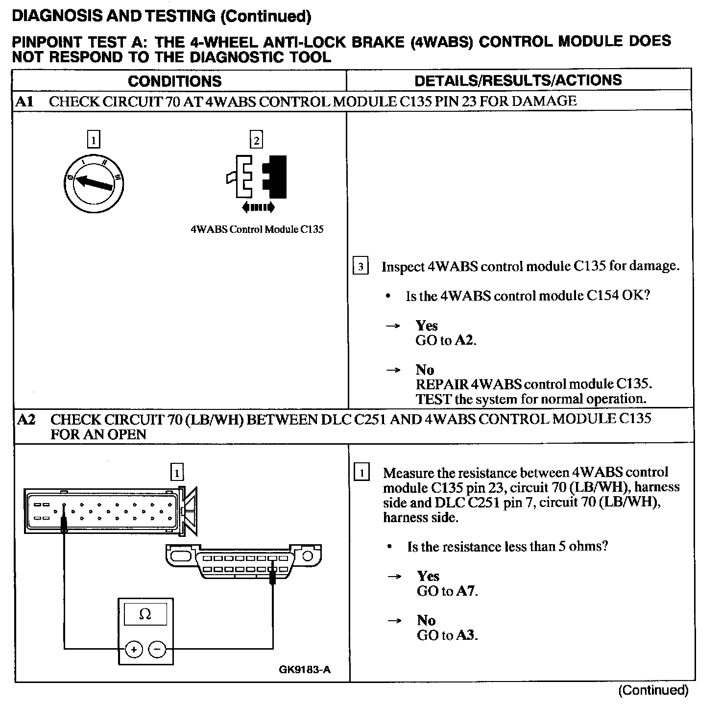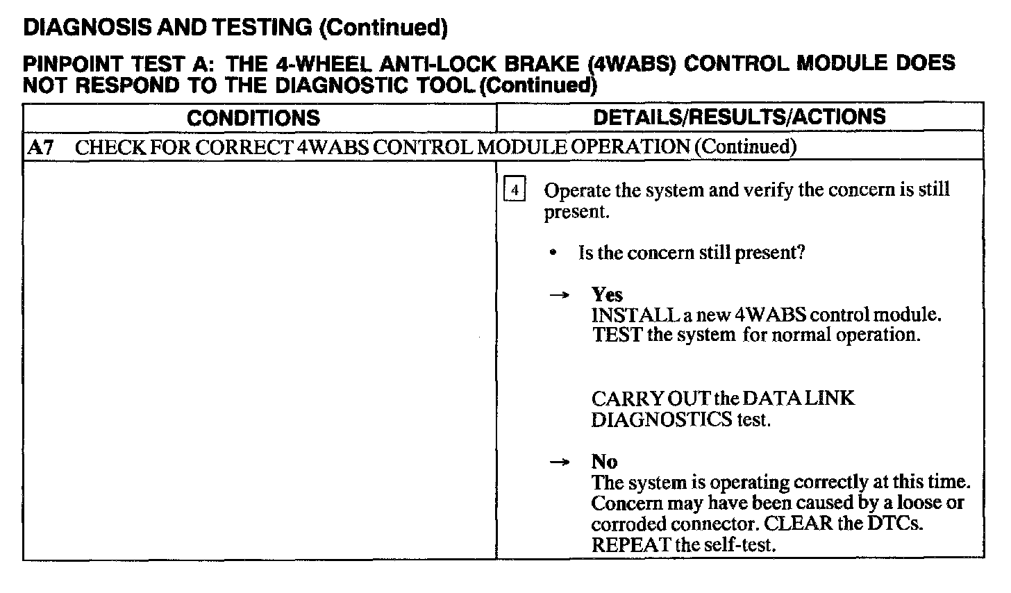 Test A: 4WABS Control Module Does Not Respond to Diagnostic Tool