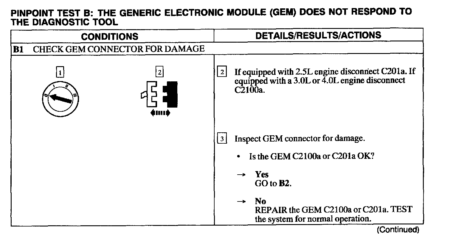 Test B: GEM Module Does Not Respond to the Scan Tool