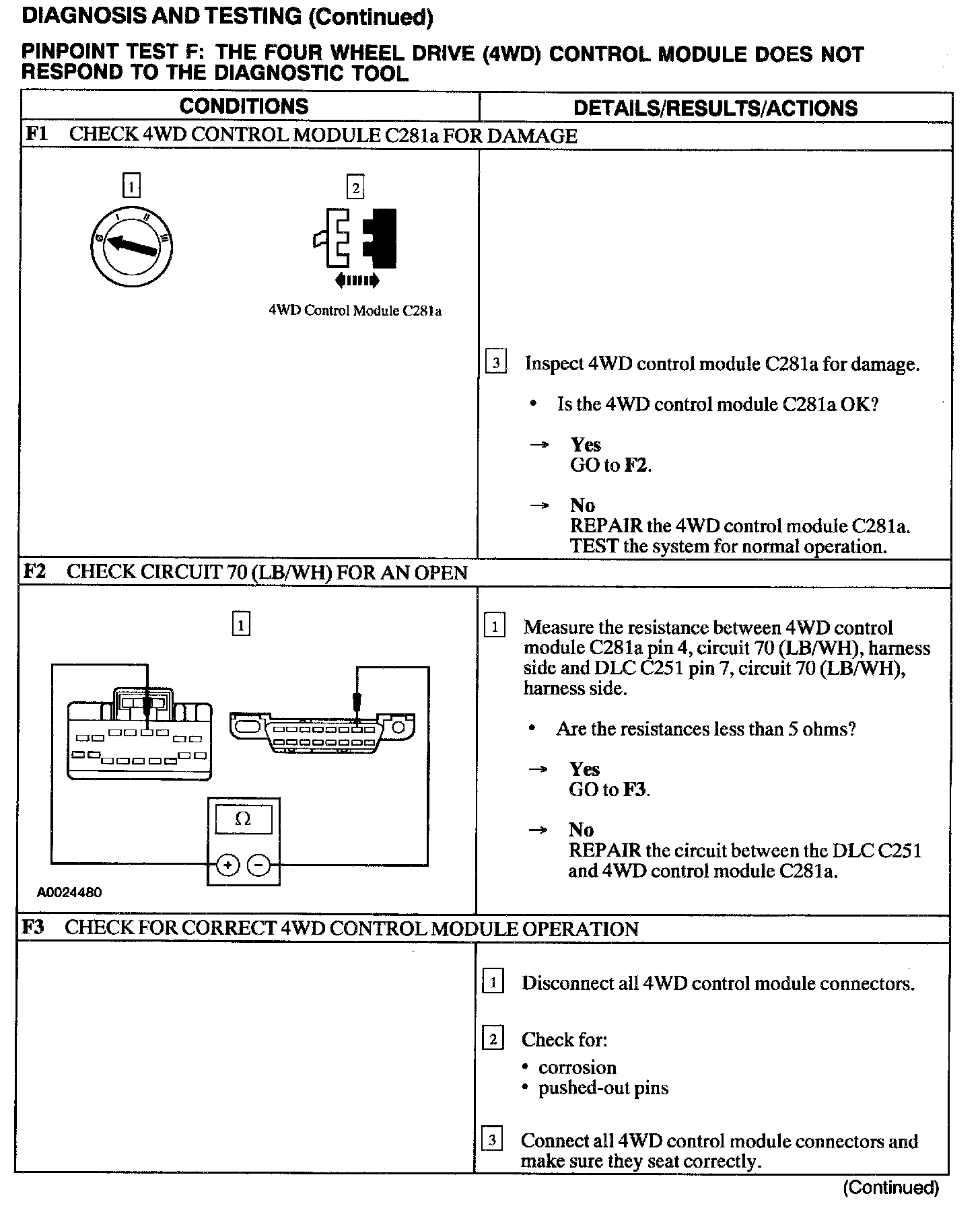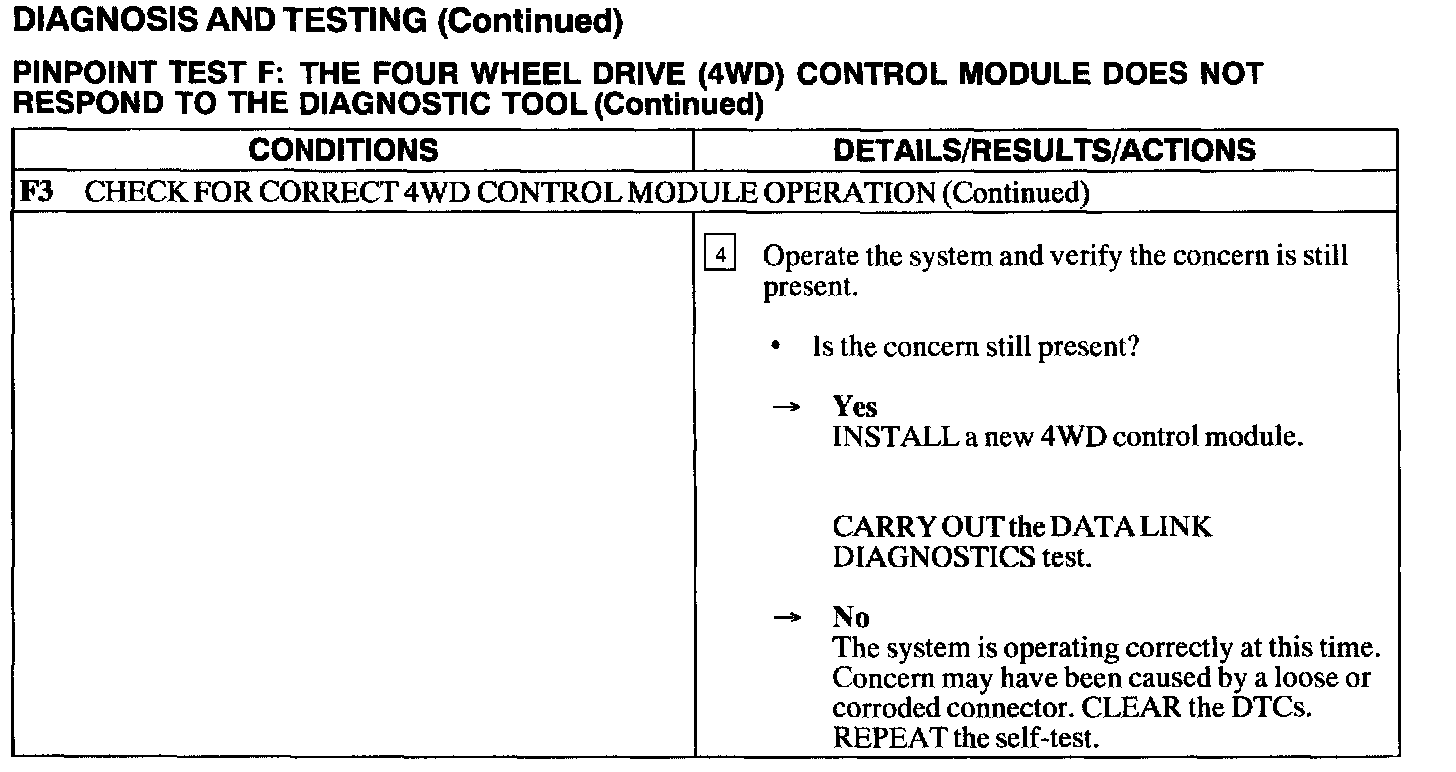Test F: 4WD Control Module Does Not Respond to the Diagnostic Tool