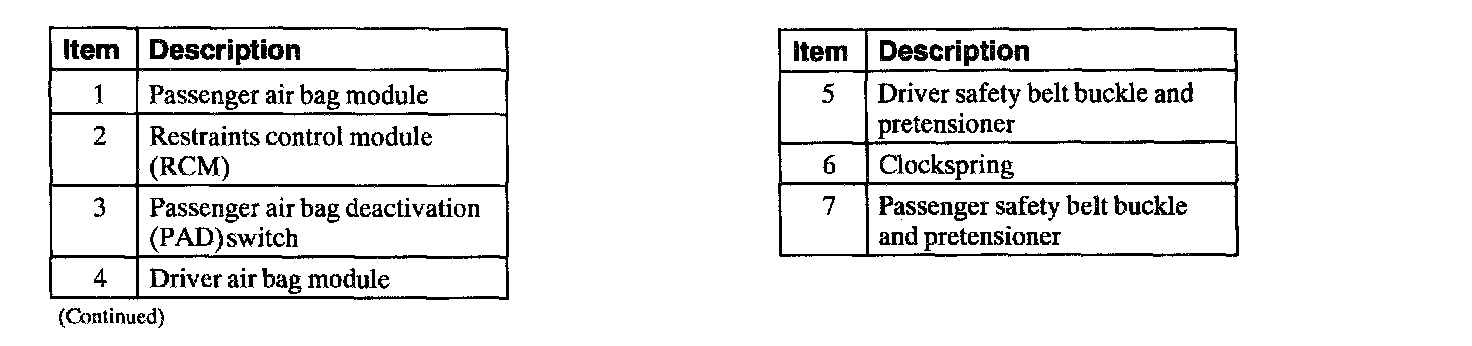 Air Bag And Safety Belt Pretensioner Supplemental Restraint System (SRS) Components, Part 2 Of 2: